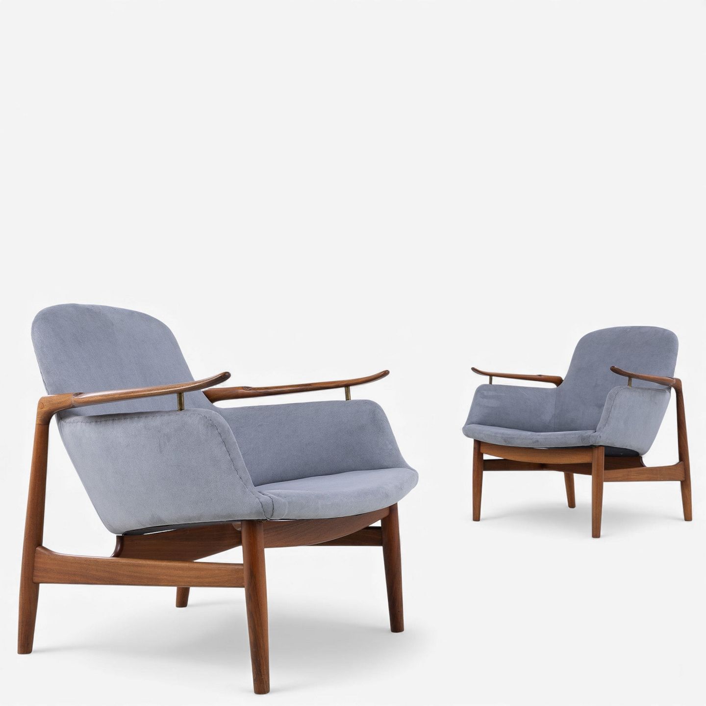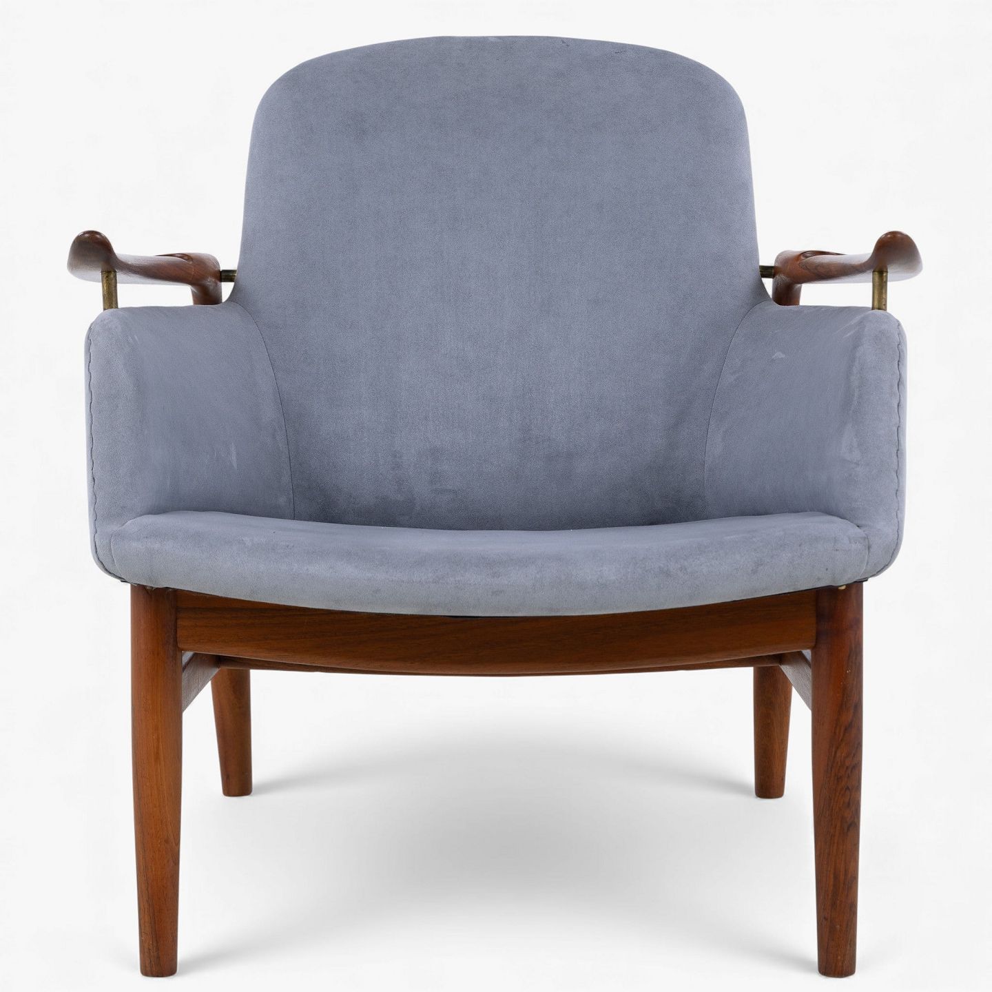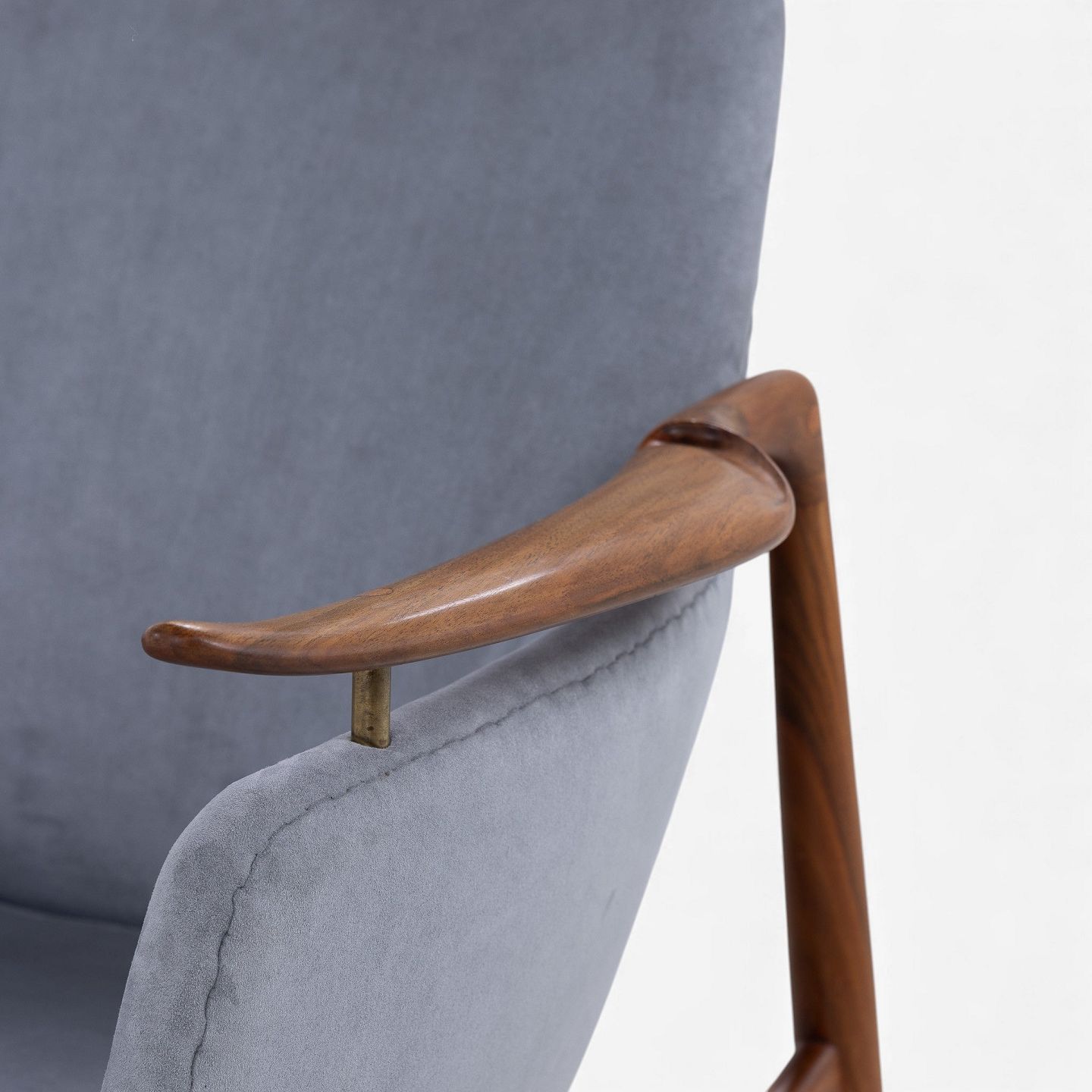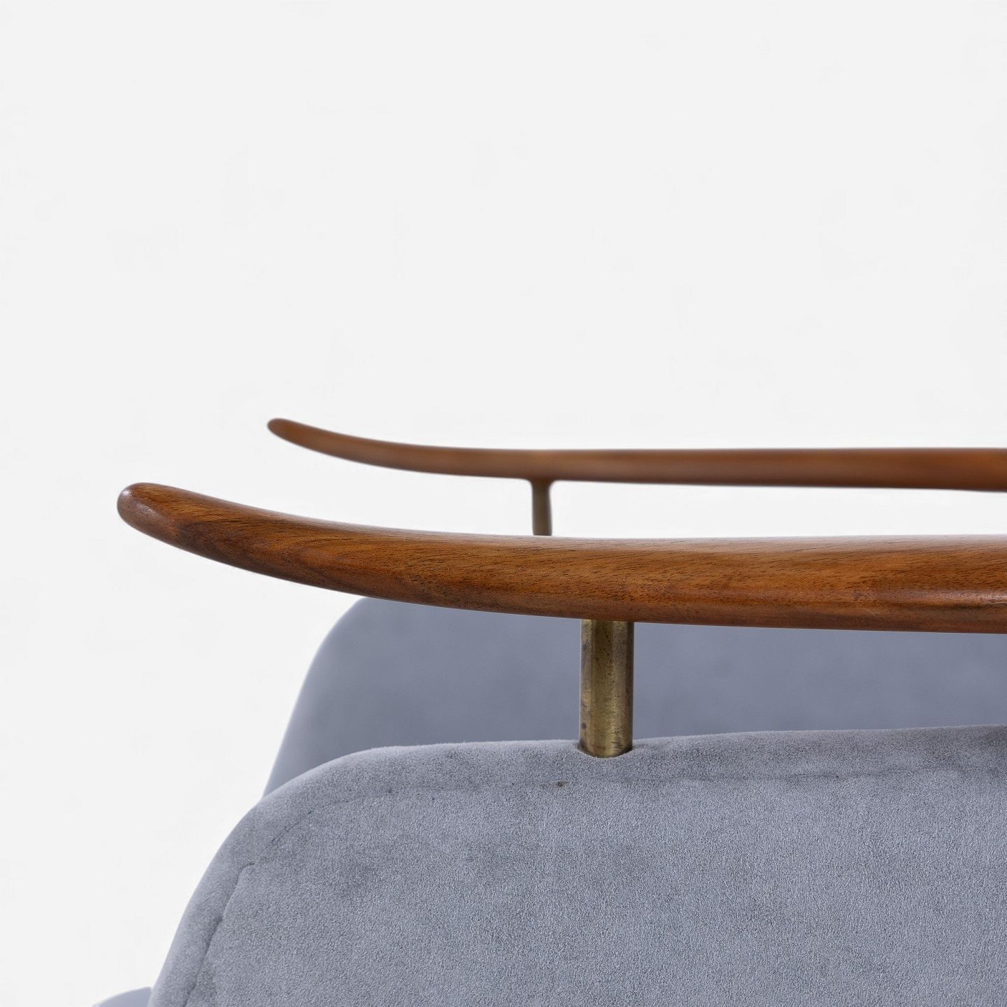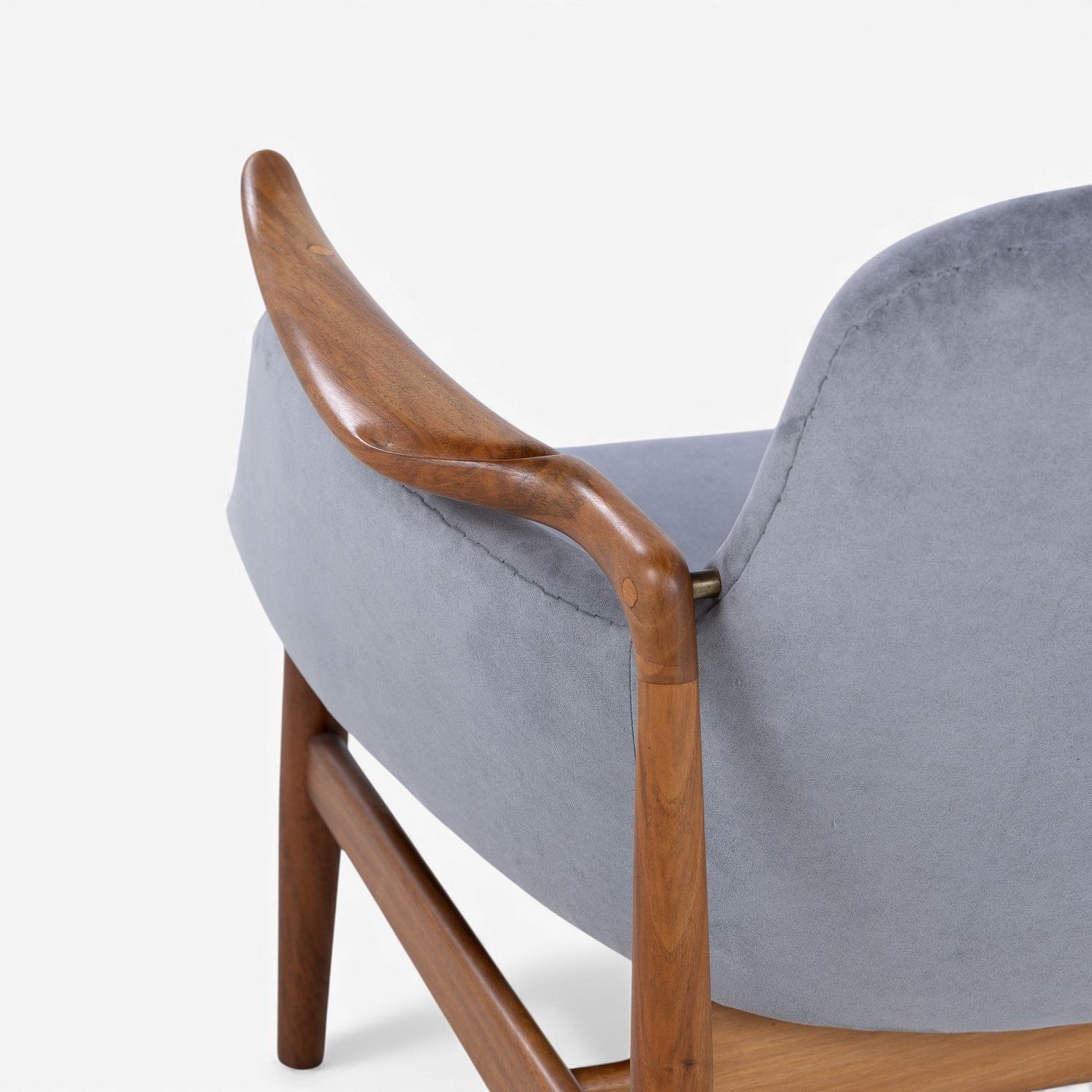 NV 53 - Armchair in grey 'Alcantara' fabric with frame in patinated walnut.