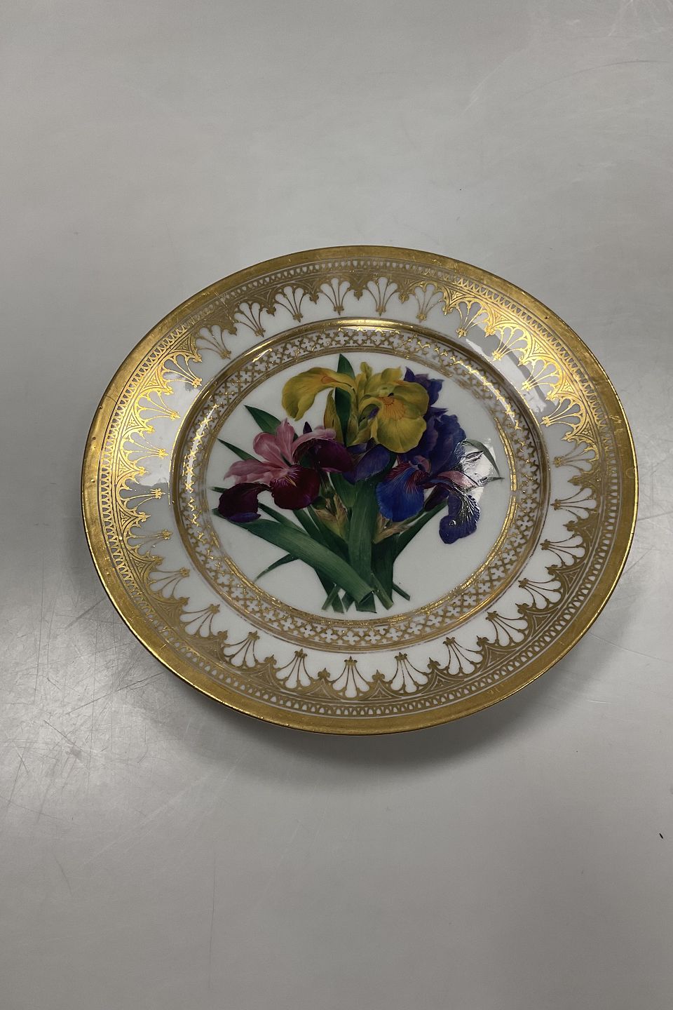 Royal Copenhagen Antique Plate with Flower Motif and gold. Signed by Christian Klein from 1820-1850Measures 22cm / 8.66 inch