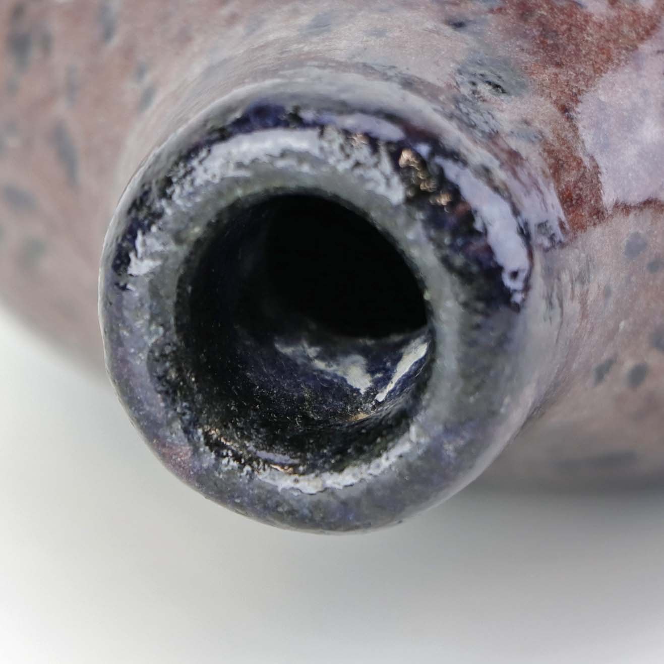 Lille flaskeformet vase i keramik med blommefarvet glasur.Formgiver Conny Walther
