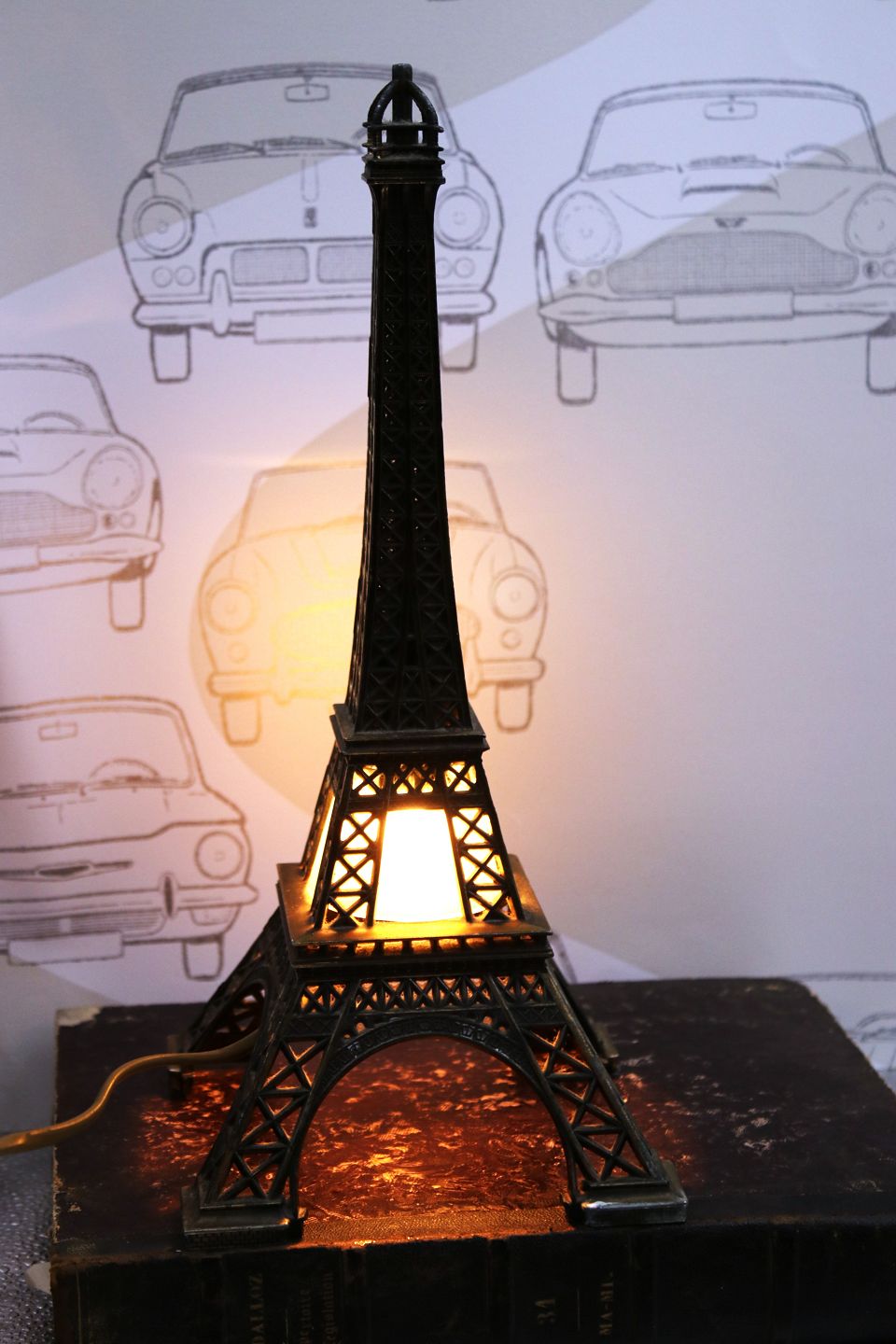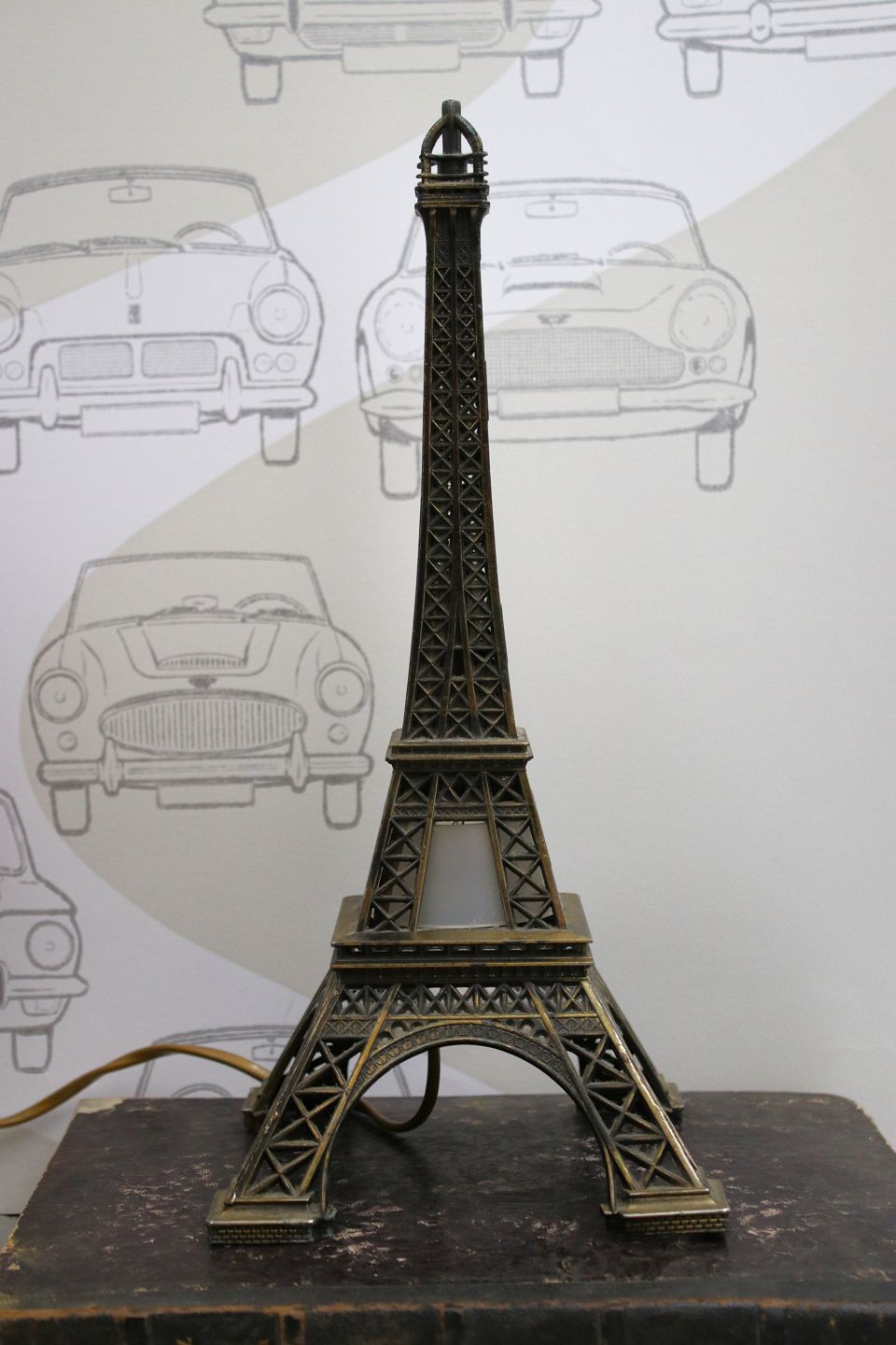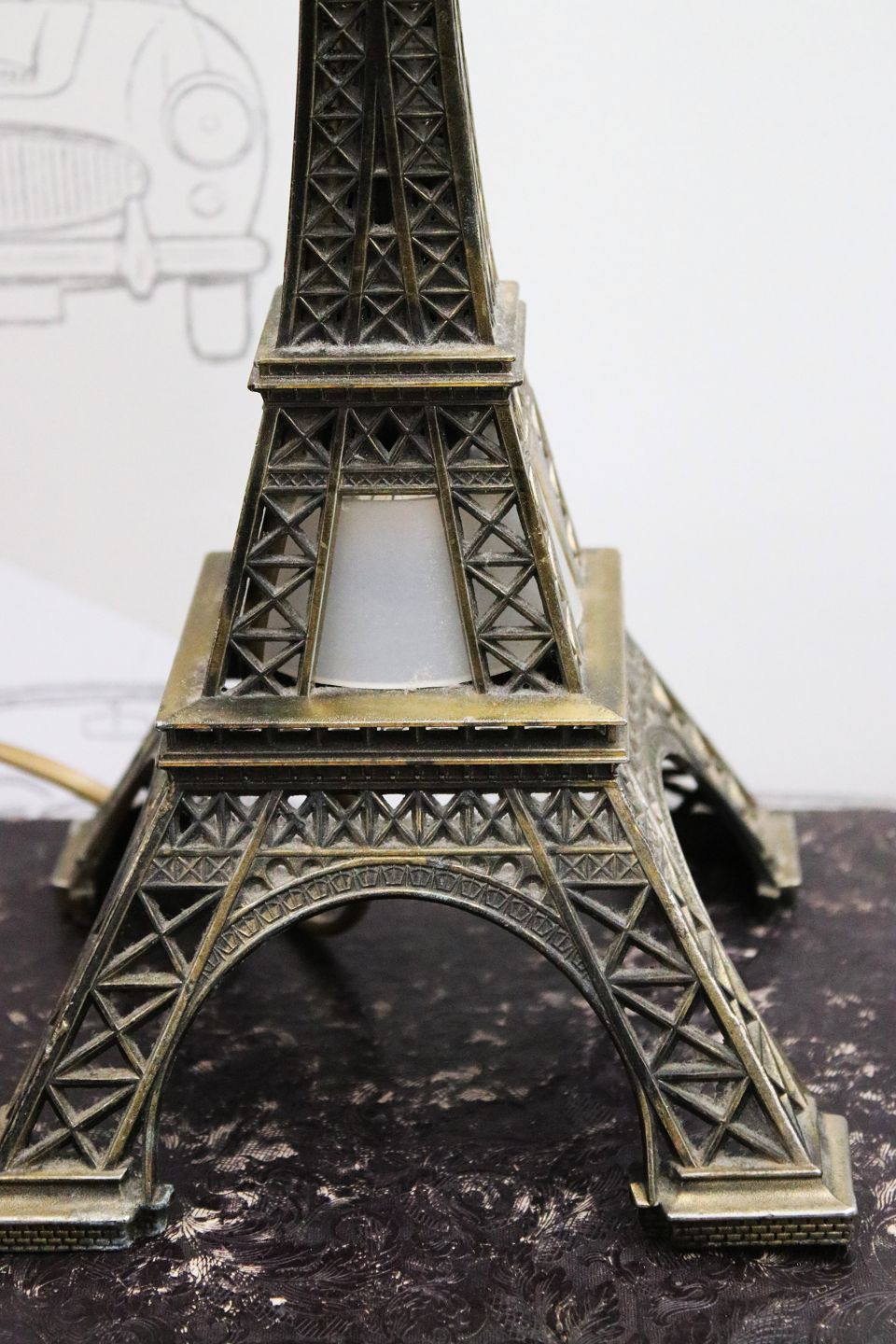 Old miniature Eiffel Tower in metal with light inside.H: 35cm. 15x15cm.