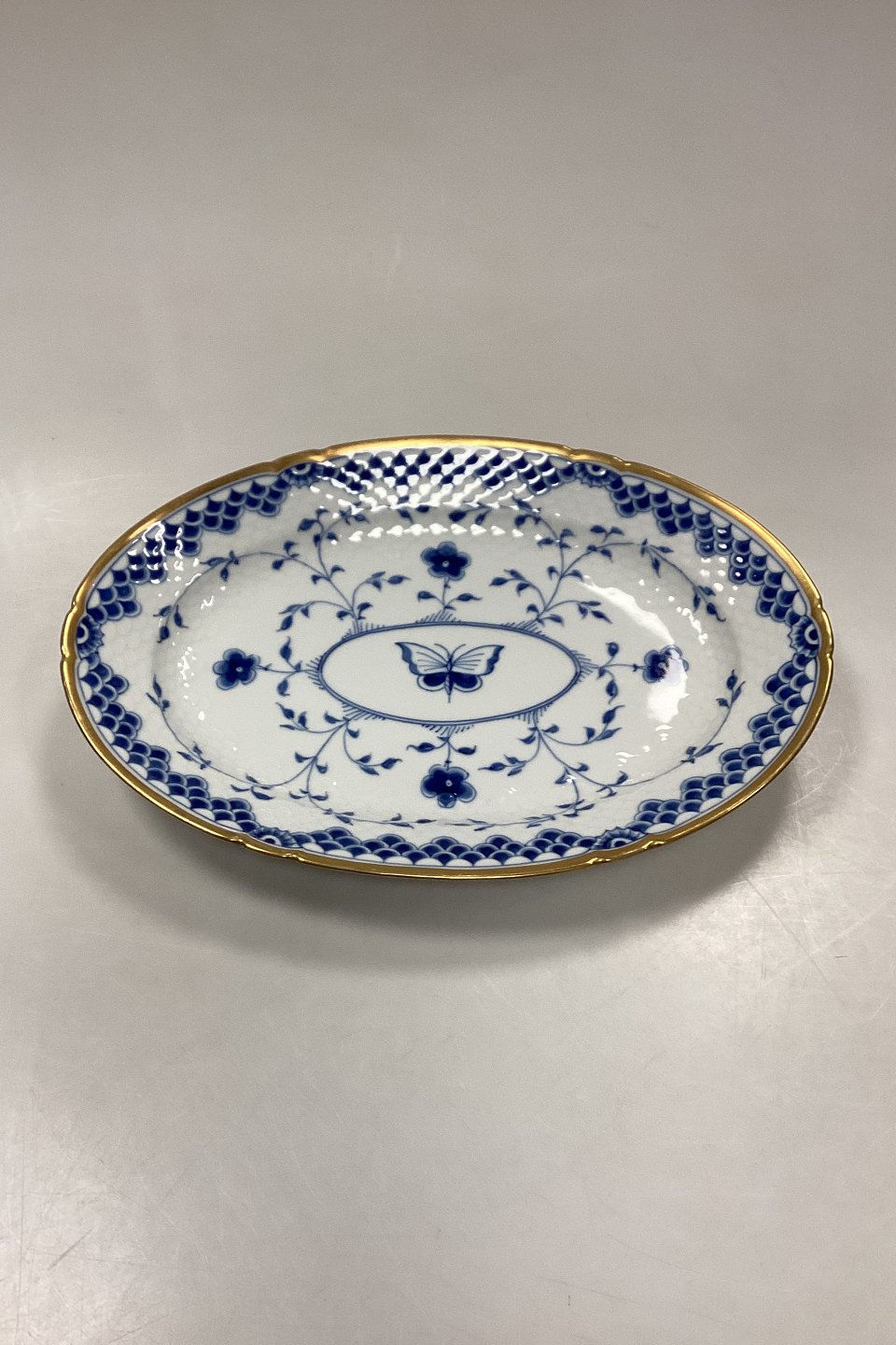 Bing and Grøndahl Dickens Butterfly with Gold, Oval Dish No. 16. Measures 34.5 cm x 24 cm / 13.58 in. x 9.44 in.Stock: 1