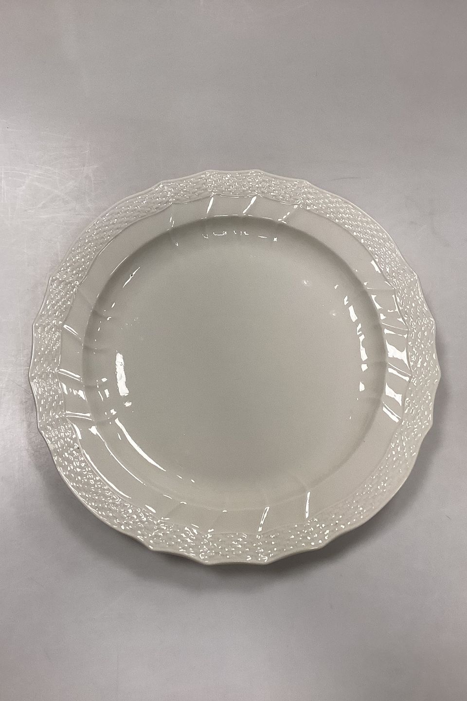 Royal Copenhagen Josephine Creme Round Dish. Measures 33 cm / 13 in.In fine condition, but with glaze and firing defects, see photo.