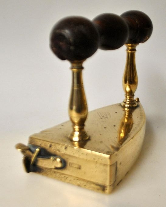 Brass iron, 19th century. Denmark. Stamped. With engravings. With wooden handle. L.: 14 cm. H.: 12.5 cm.Perfect condition!