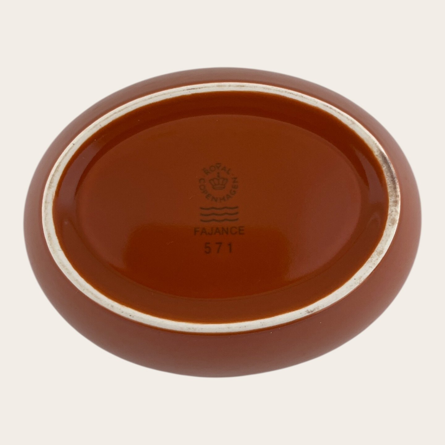 Royal Copenhagen, Aluminia, Ursula, Oval bowl, Brown #571, 1st sorting, 10.5cm long, 8cm wide, 6cm high, Design Ursula Munch Petersen *Good condition*Stock: 1