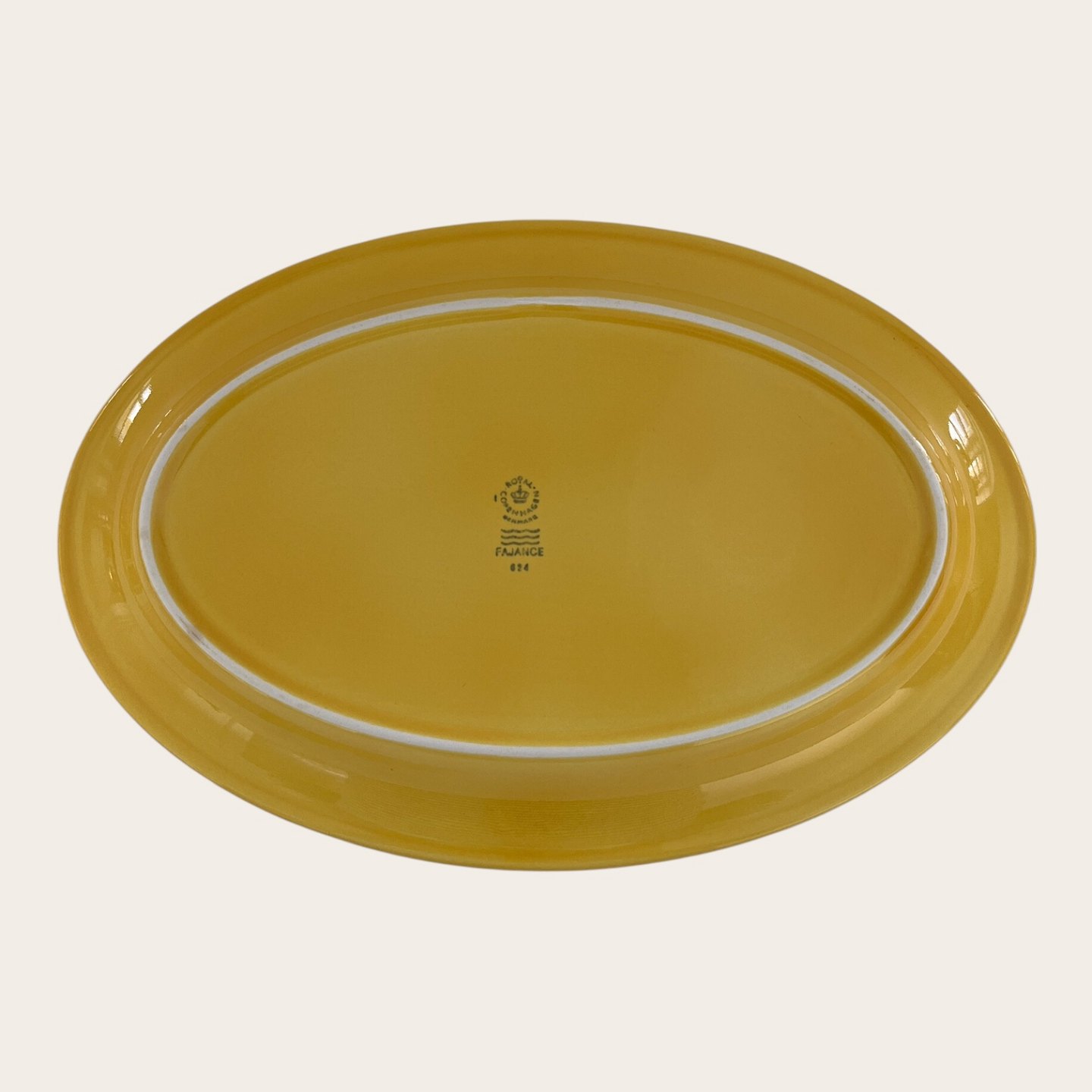 Royal Copenhagen, Aluminia, Plate, Yellow #624, 1st sorting, 33.5cm long, 22cm wide, Design Ursula Munch Petersen *Good condition*Stock: 11