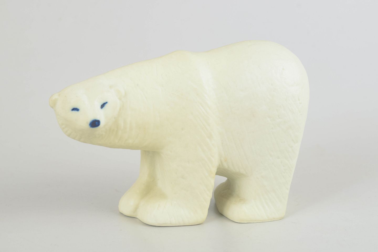 Lisa Larson for Gustavsberg, polar bear figurine.Decorative animal figurine in glazed stoneware, modelled as a polar bear with softly rounded forms and subtle facial detailing. Produced in the 1970s, the piece has a restrained, distinctive character where form and surface treatment reflect Lisa Larson’s well-known style. The model belongs to the Skansen series.
