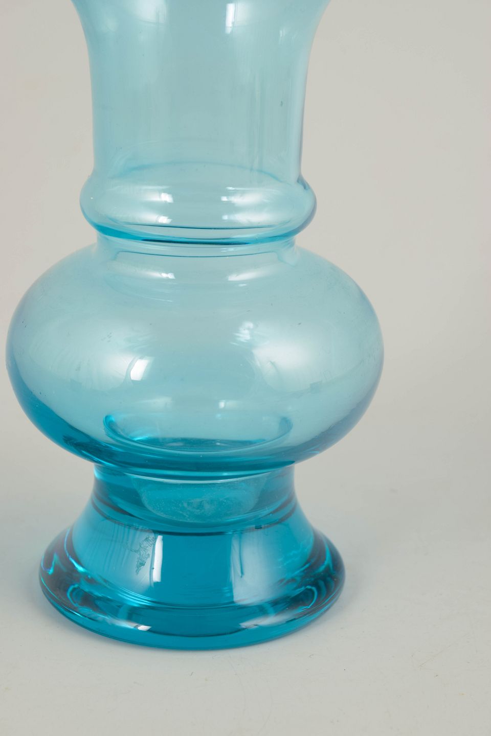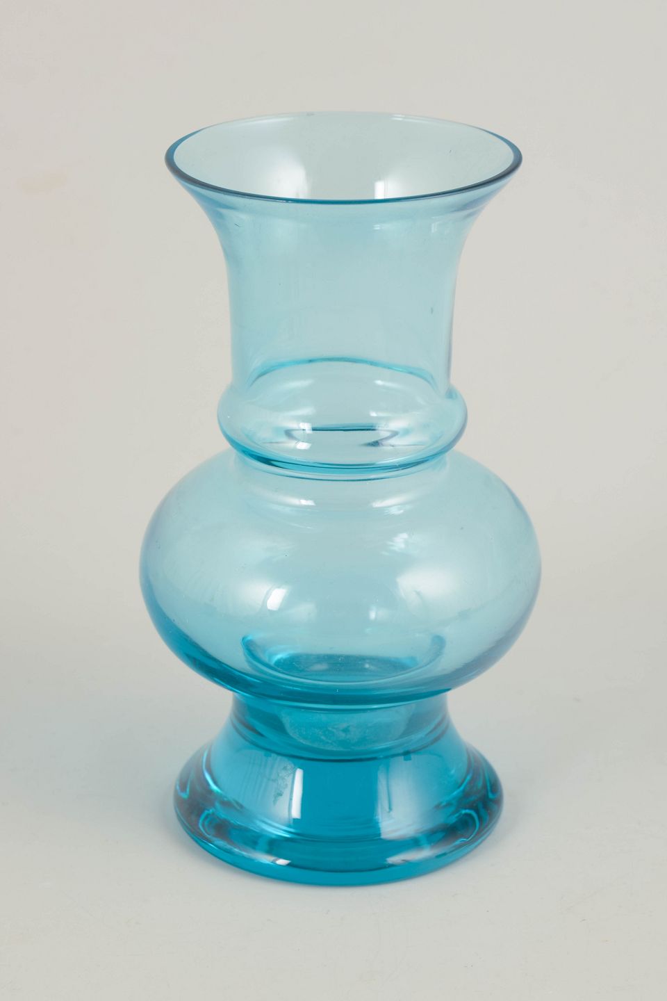 Tamara Aladin for Riihimäen Lasi, mouth-blown art glass vase.An elegant vase in clear turquoise-blue glass with a balanced, sculptural profile and a softly rounded body. Mouth-blown with a gently flared neck and foot, characteristic of Finnish art glass from the 1970s.