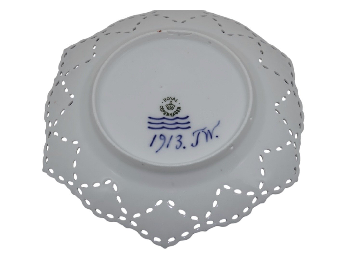 Royal Copenhagen Blue Fluted Full Lace, large double lace plate.The plate is hallmarked 1913 (At that time, once a year, the painters at Royal Copenhagen could make one thing for themselves. These were marked with year and sometimes PRIVAT and is often extra nicely decorated).