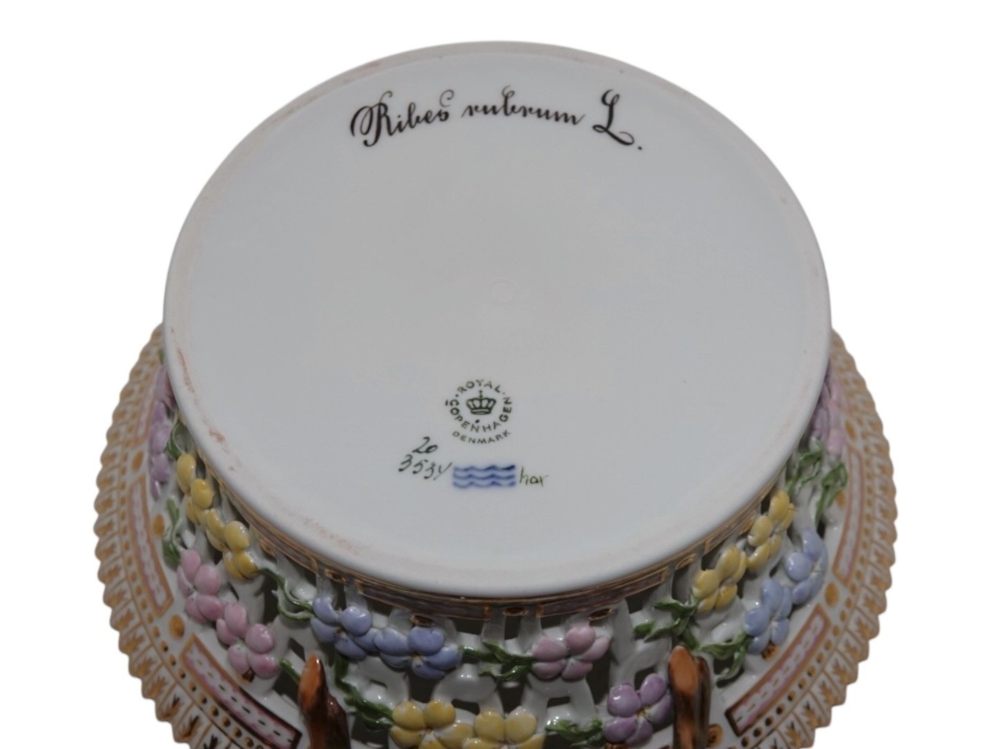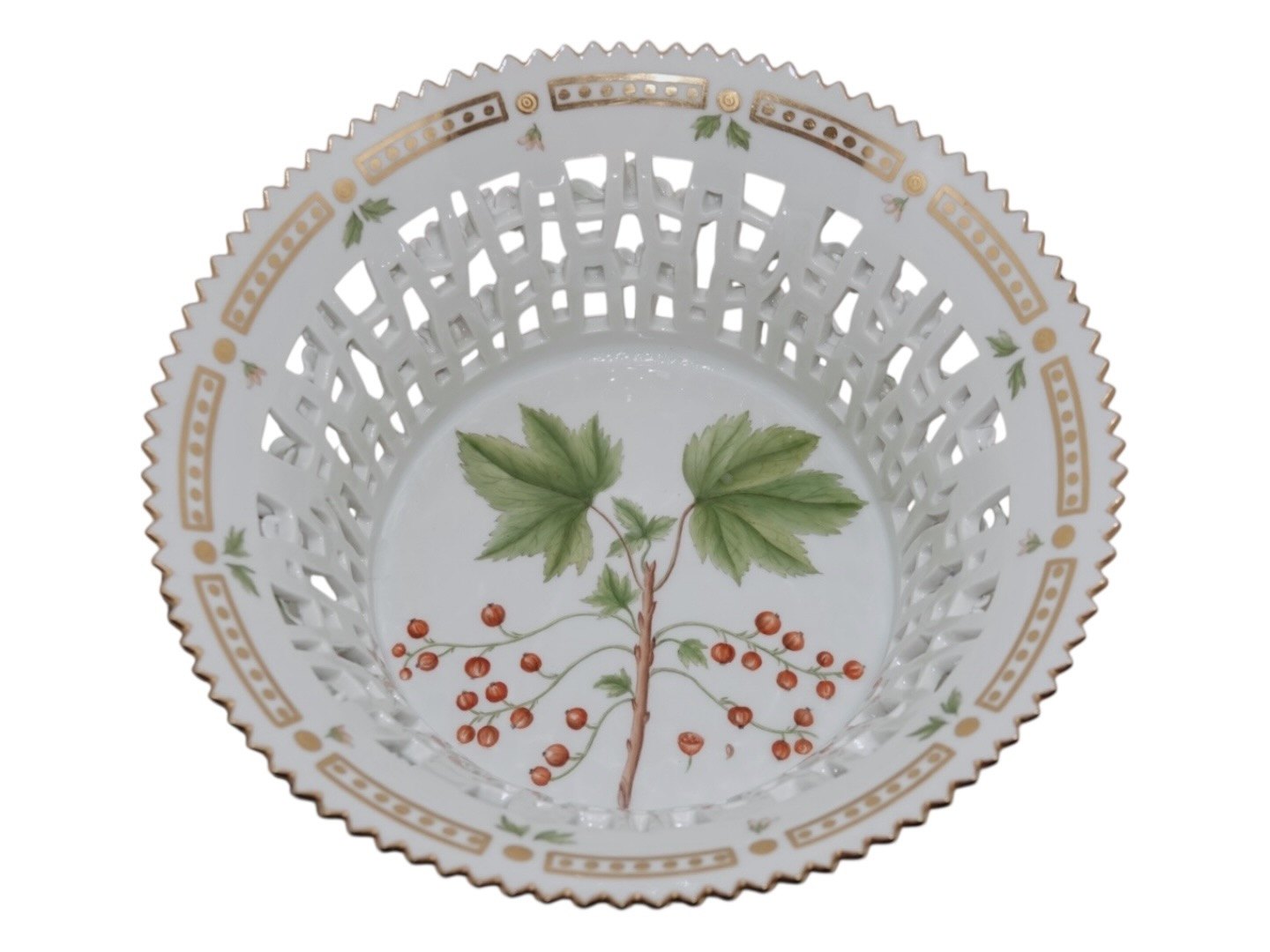 Royal Copenhagen Flora Danica, round fruit basket.Decoration number 20/3534.