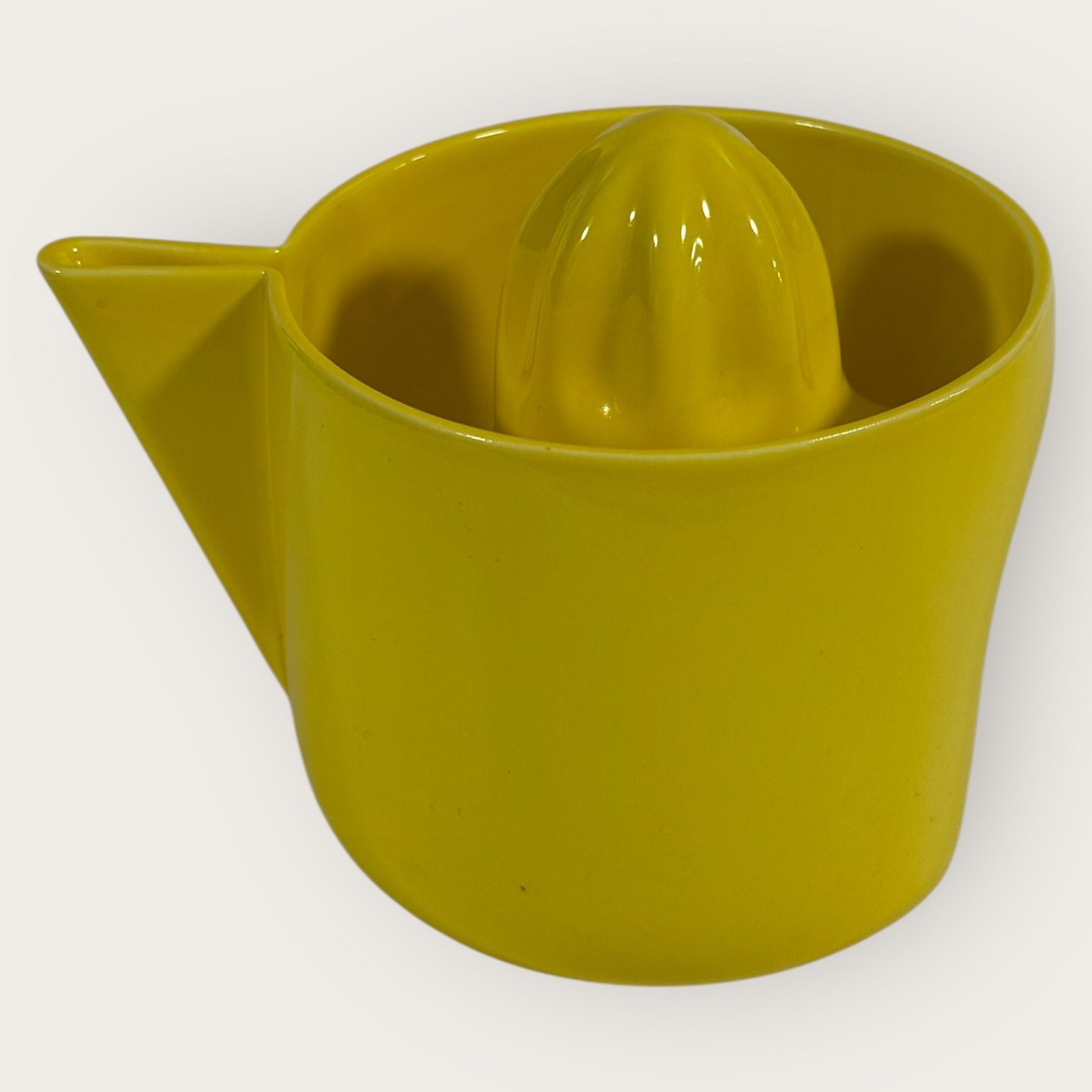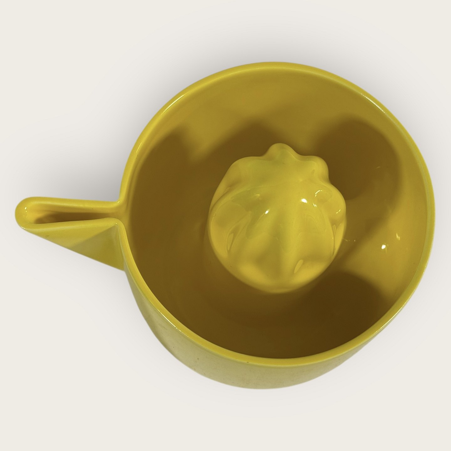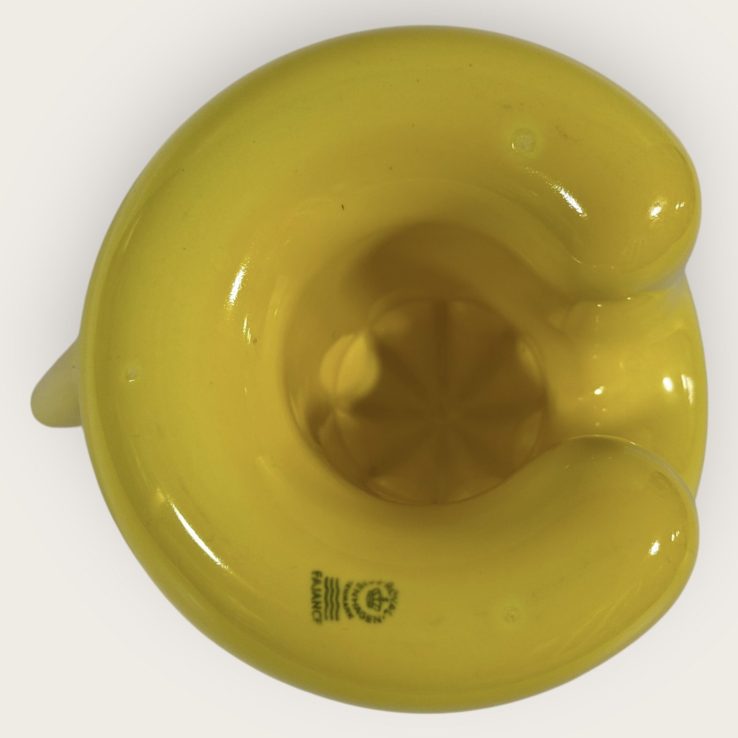 Royal Copenhagen, Faience, yellow lemon squeezer, # 848, Design Ole Jensen, Dimensions: height 11cm, diameter 13.5cm, width with spout 17cm, 1st grade *Perfect condition*Stock: 1