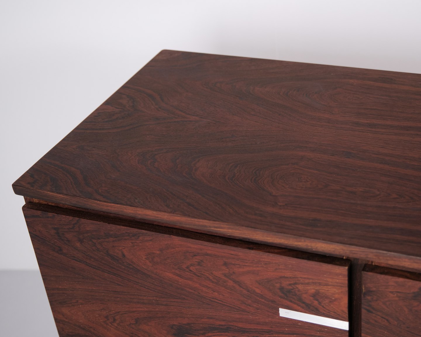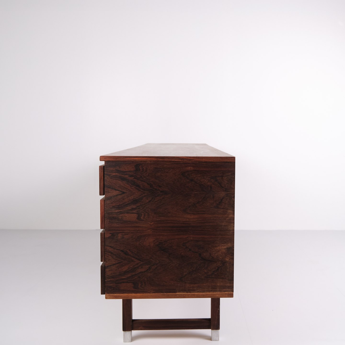 Sideboard in rosewood designed by Kai Kristiansen for Feldballes Møbelfabrik. Danish design from the 1960s with aluminum handles and feet.— Origin: Denmark