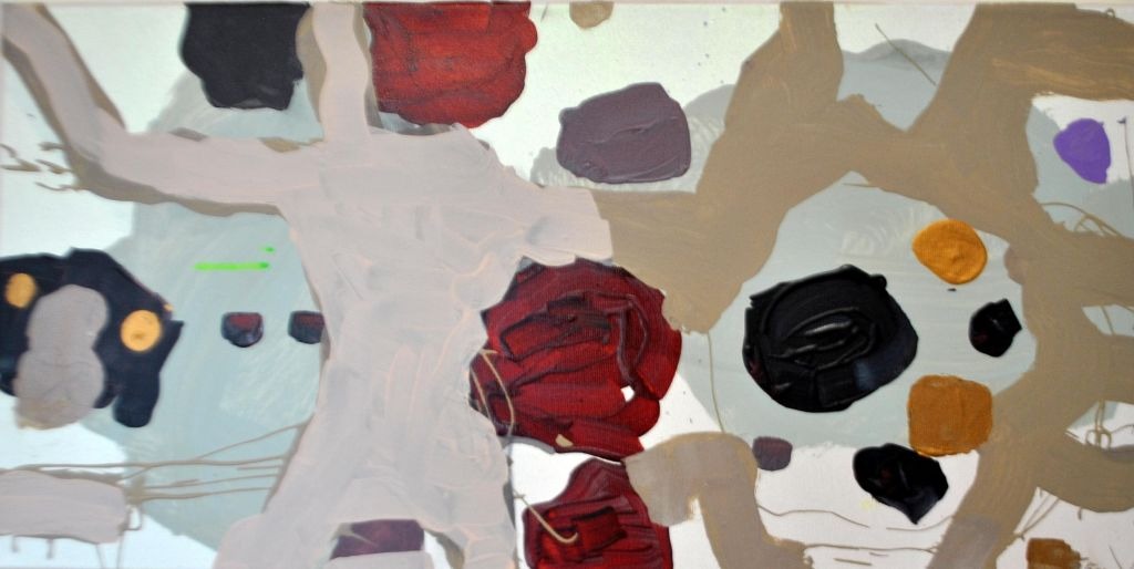 Skovgaard, Peter (1960 -) Denmark: Composition. Acrylic on canvas. Signed. 30 x 60 cm.Unframed.
