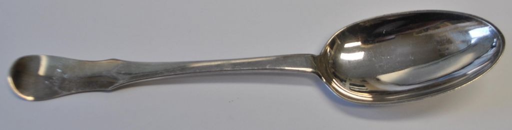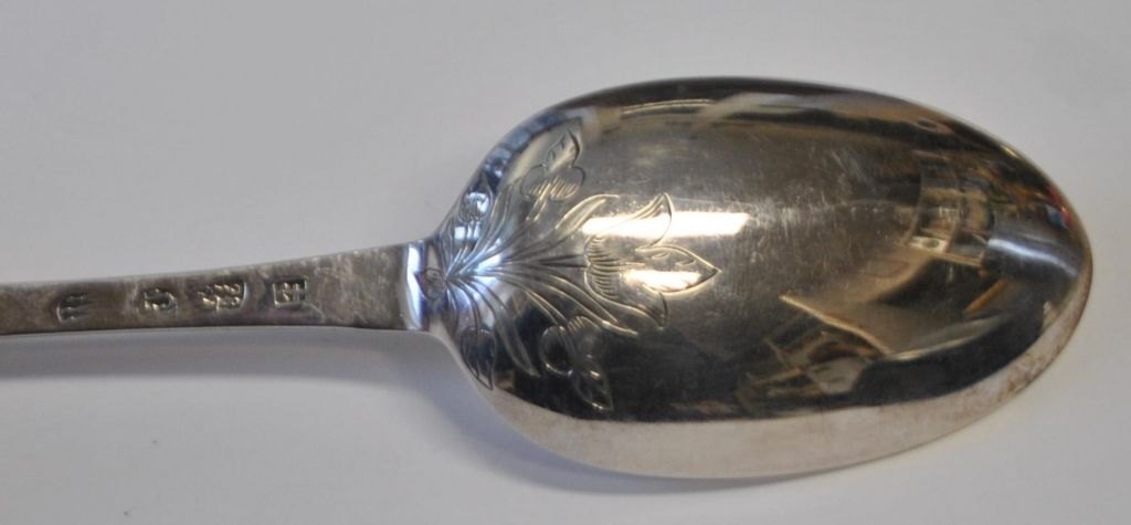 Copenhagen silversmith (18th century): Rococo silver spoon. Unclearly stamped 1786. With decorations in the form of poppies. With newer engraving. L.: 21.5 cm.Weight: 57 grams.