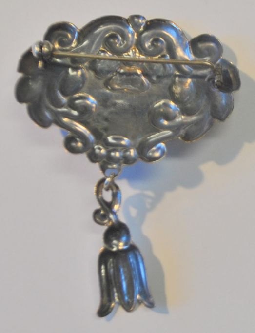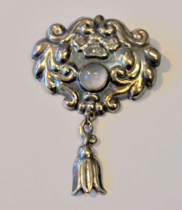 Danish silversmith, 20th century: Jugend brooch in silver with stone. Stamp: 826 p. 6.5 x 4.8 cm.Item number: 28752
