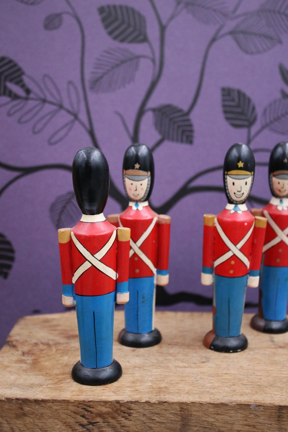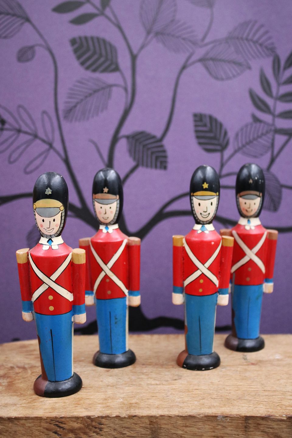 Decorative, old Guard Hussars in full uniform in painted wood.H: 13.5cm. (4 pcs. only sold together)