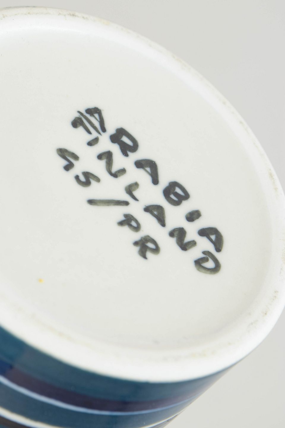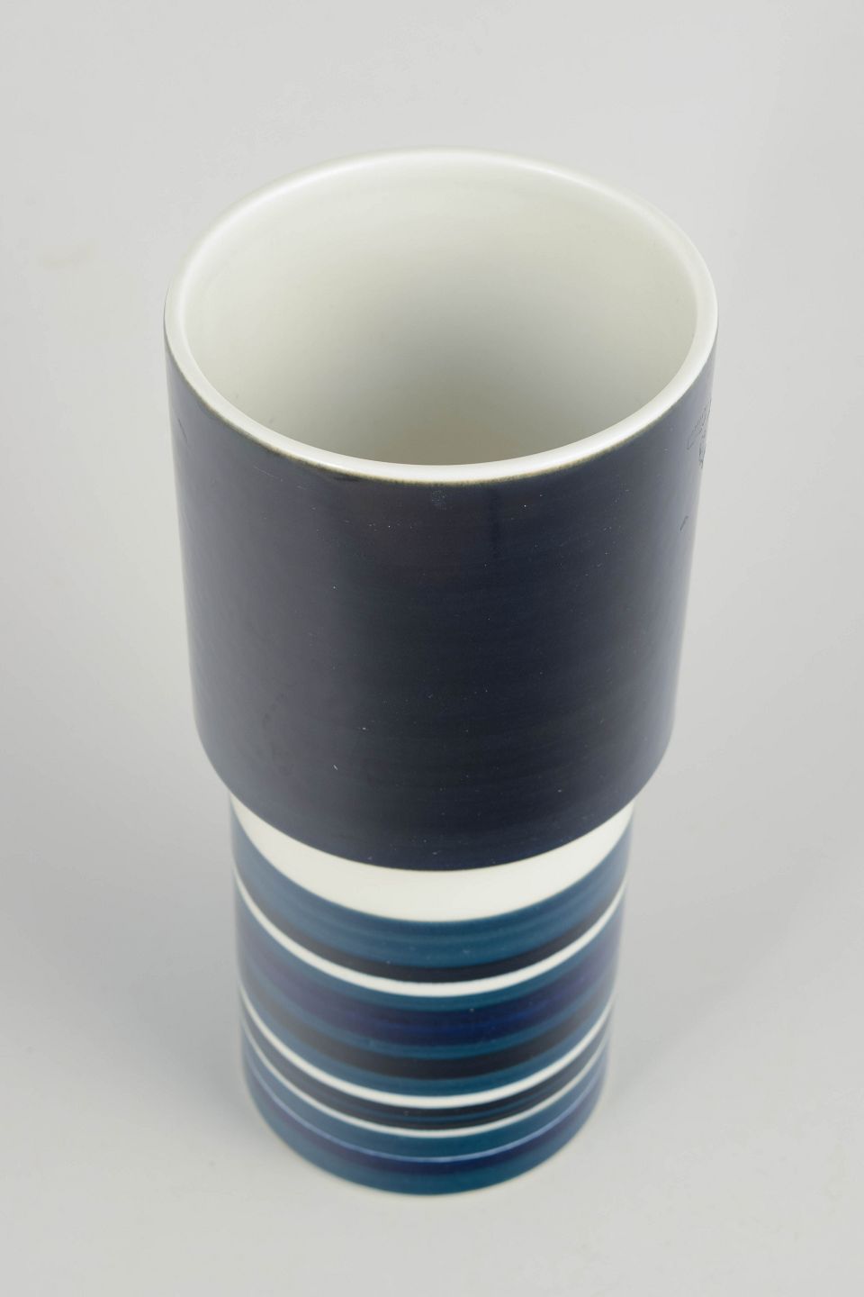 Arabia’s studio and art production in the mid-20th century is characterised by a balance between disciplined form and experimental glaze work. Striped and graphic decoration was typical of the period’s modernist aesthetic, emphasising surface, colour, and proportion. Unique pieces and small-series works from this era are now highly sought after by collectors.