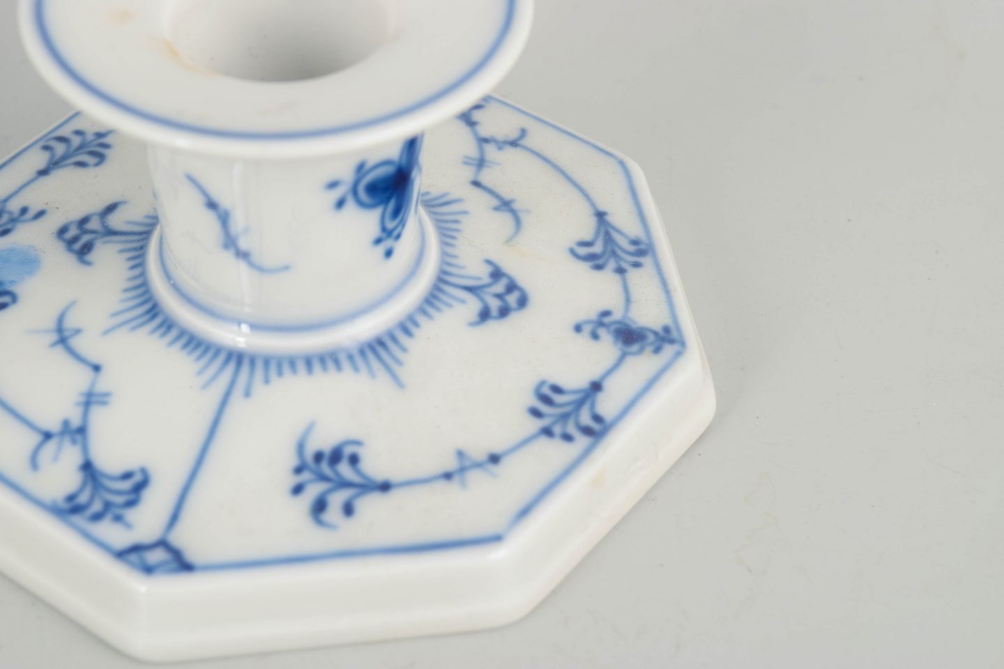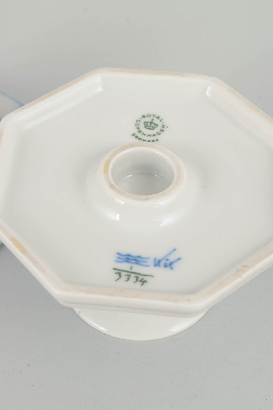 Royal Copenhagen, pair of candlesticks, Blue Fluted Plain. 1980s.Pair of fluted candlesticks in glazed porcelain with hand-painted cobalt-blue underglaze decoration. Octagonal bases with a low, well-proportioned profile and cylindrical candle holders. Model 1/3334.