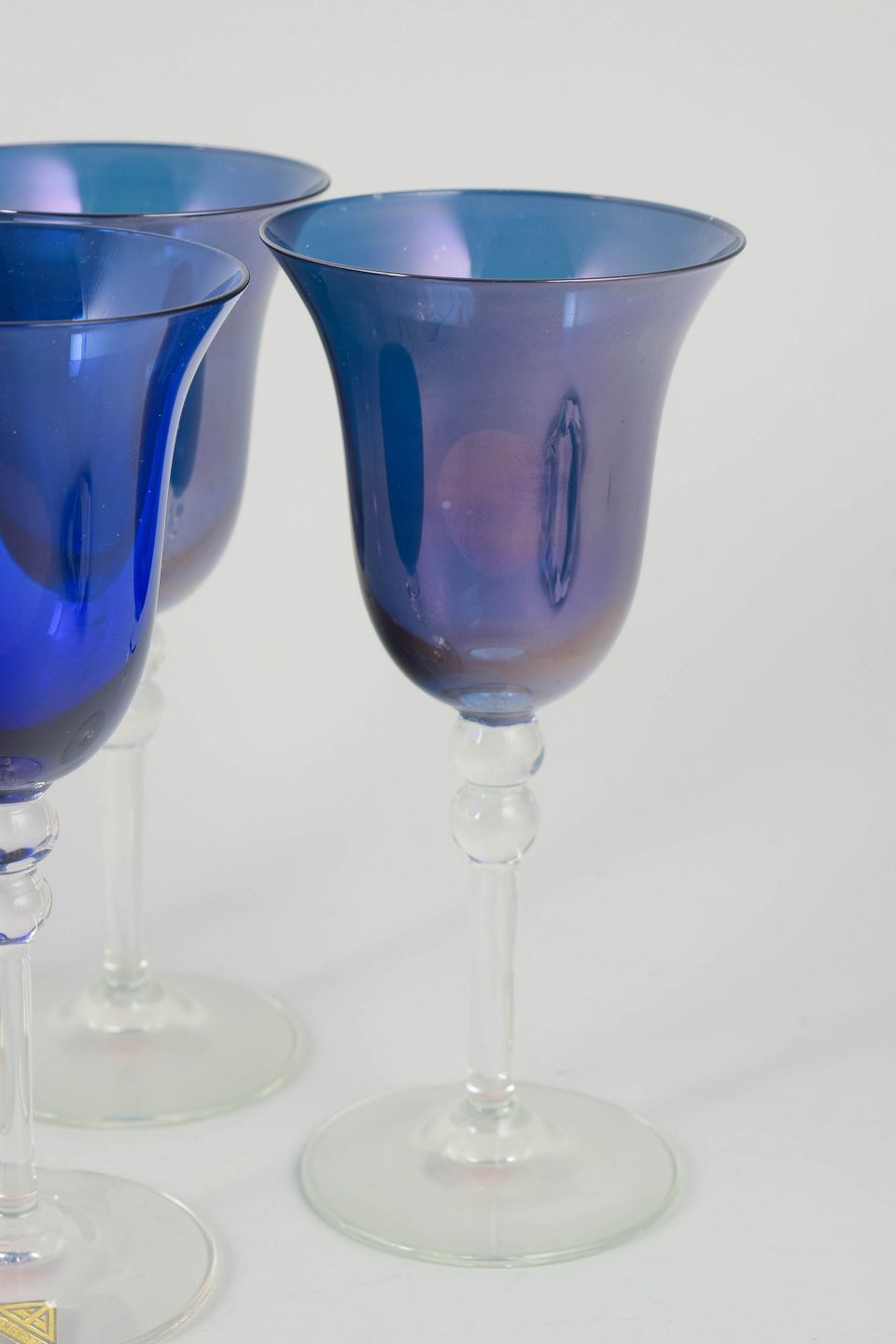 Gullaskruf Glasbruk, set of 4 champagne glasses.Set of four handmade art glass champagne glasses with a slender bowl and light, well-balanced stem. Designed in a classic Scandinavian idiom typical of Swedish glassmaking in the 1960s and 70s, with an emphasis on function, proportion, and clarity.