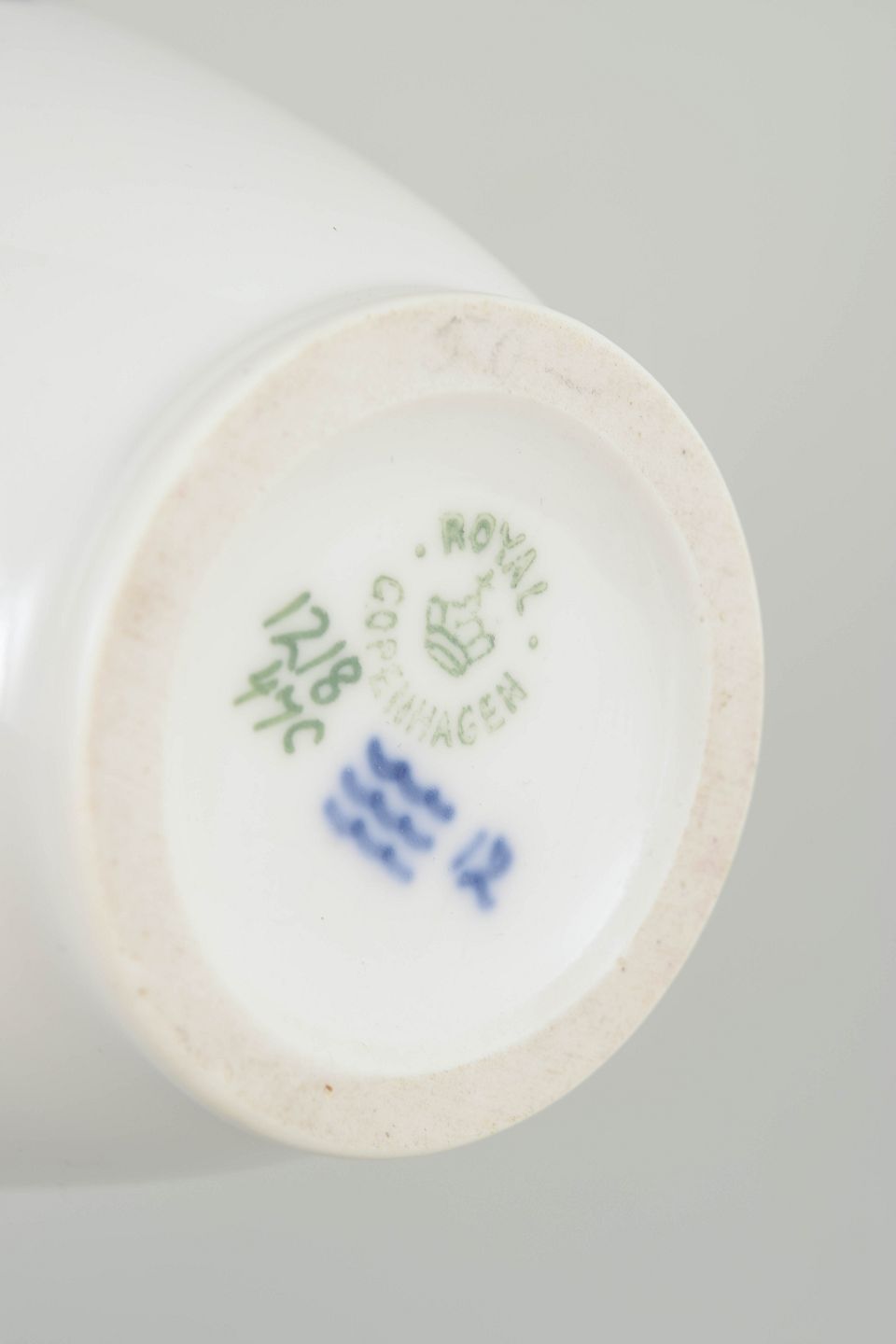 During the 1920s, Royal Copenhagen placed strong emphasis on hand-painted underglaze decoration, often drawing inspiration from botanical subjects. The period is characterised by a refined balance between traditional craftsmanship and a more simplified, modern aesthetic that would come to define the factory’s artistic production in the interwar years.