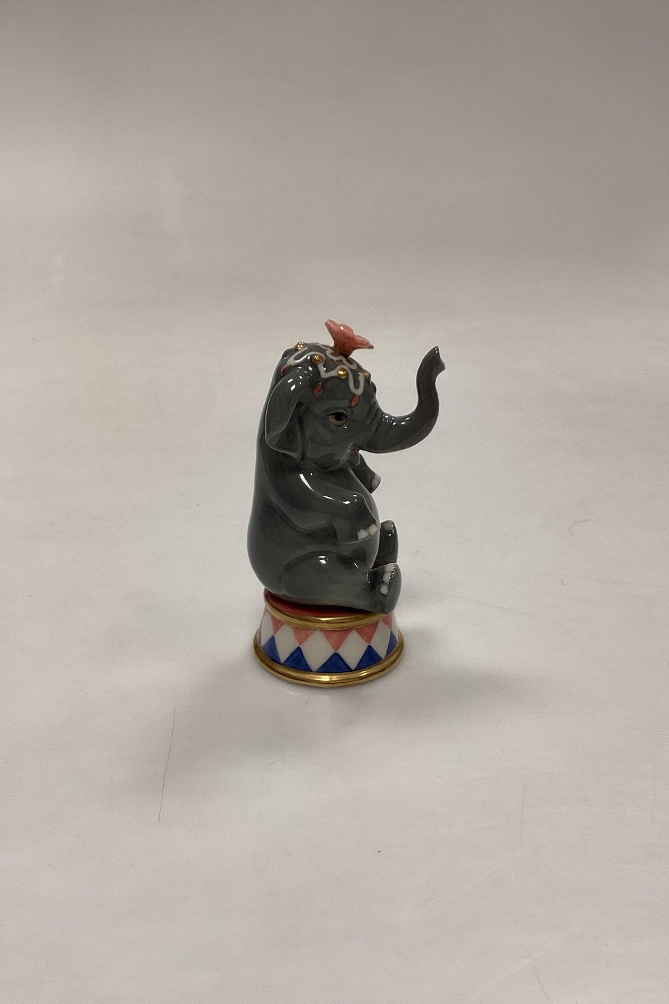Royal Copenhagen Figurine - Circus Elephant No. 208. Figurine from the Mini Circus Collection. Designed by Svend Vestergaard from 2015-2019. Measures 9.5 cm / 3.74 in.Stock: 1