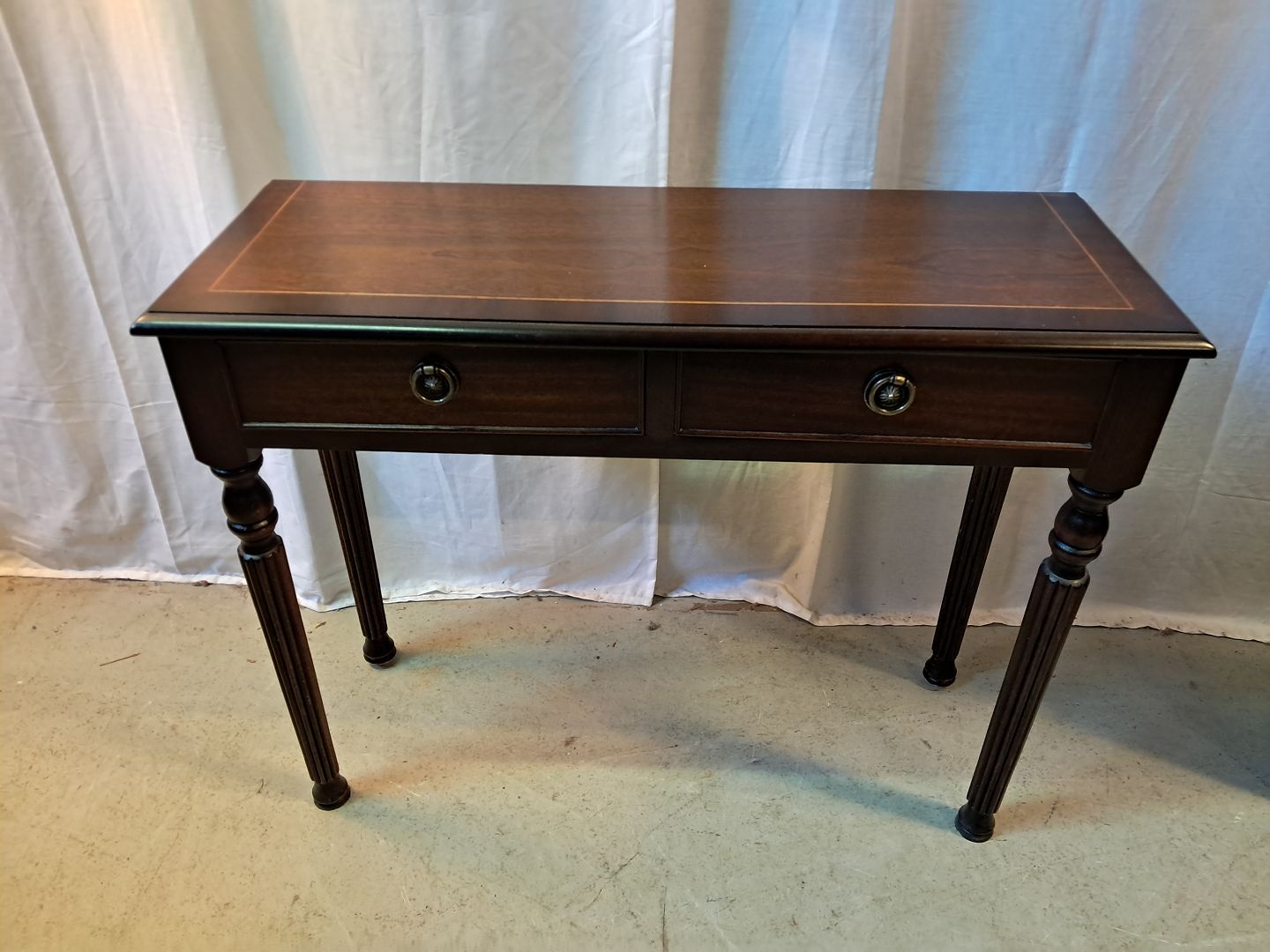 Konsol i fineret mahogni, fra 1990erne.Det har brugsspor.