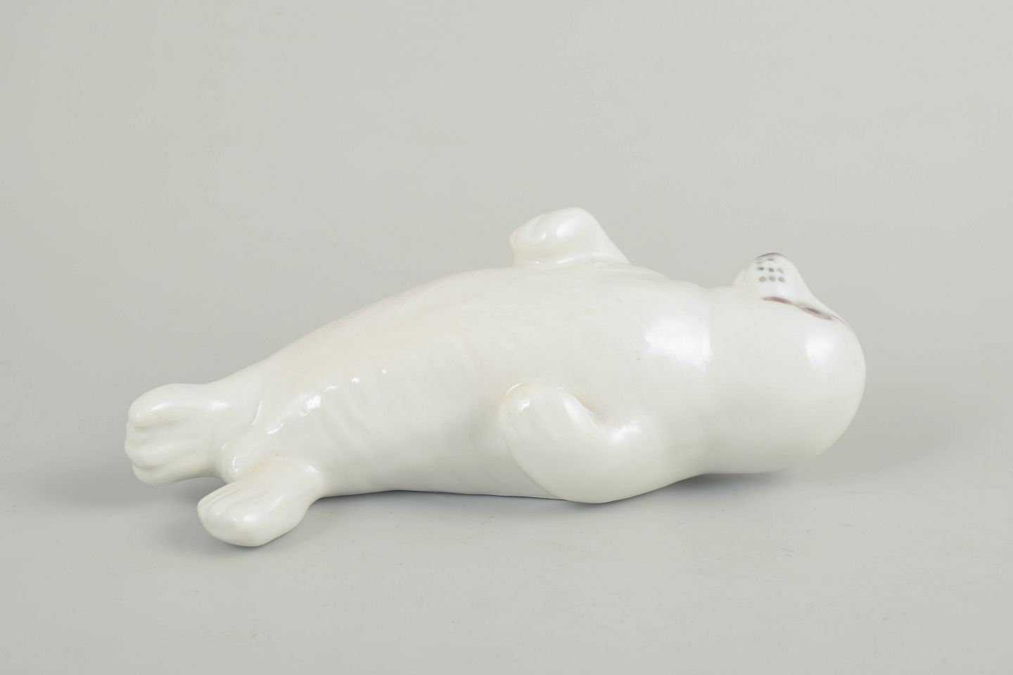Royal Copenhagen, baby seal figurine.Porcelain figurine depicting a reclining baby seal, modelled with soft, rounded forms and finished in a uniform white glaze that emphasises the calm, naturalistic expression. Model 542.