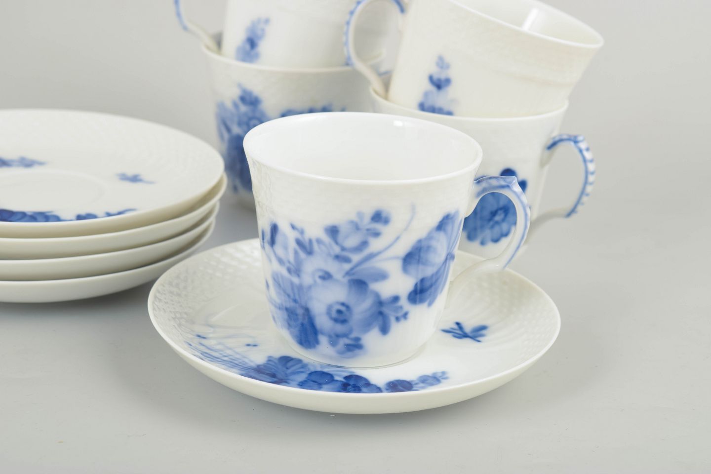 Royal Copenhagen, Blue Flower Braided coffee cups, set of 5.Set of five coffee cups with matching saucers in glazed porcelain with hand-painted underglaze decoration in the classic Blue Flower Braided pattern. Model 10/1546.