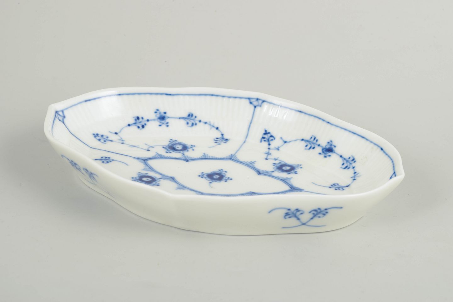 Royal Copenhagen, Blue Fluted Plain dish.Oval dish in glazed porcelain with hand-painted underglaze decoration in the classic Blue Fluted Plain pattern. Model 1/147.