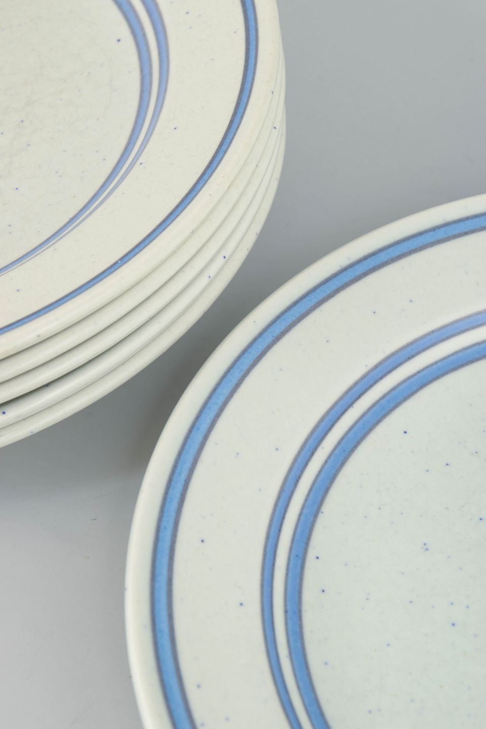 Stig Lindberg for Gustavsberg, six salad plates.Set of salad plates in faience with a simple circular form and restrained blue line decoration on a light ground. The plates are produced as part of Gustavsberg’s “Dart” series, characterised by its clean and graphic expression, typical of Stig Lindberg’s work from this period.