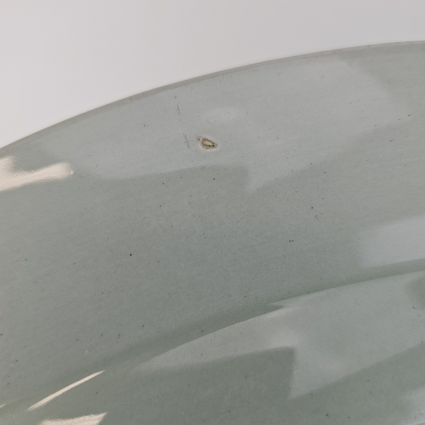 Stel i lysegrøn fajance med natur dekoration og flettet kant