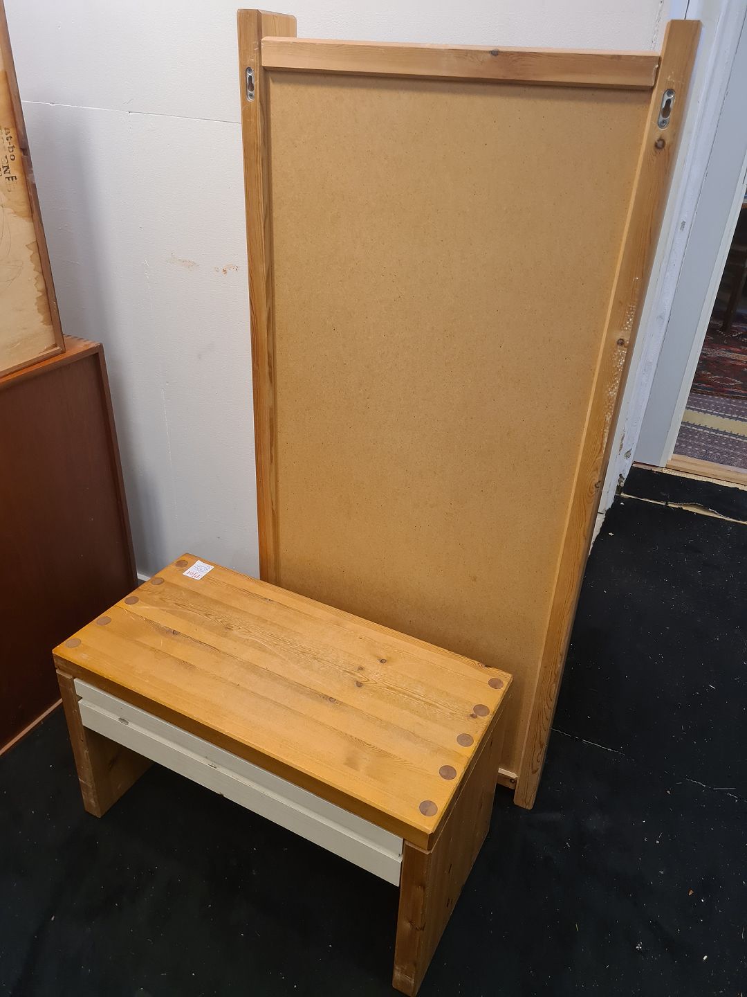 Svensk produceret entré møblement bestående af kommode og spejl. Fremstillet i massiv fyr i 1980'erne. Fremstår godt og ok velholdt dog med lidt overfladiske brugsspor.