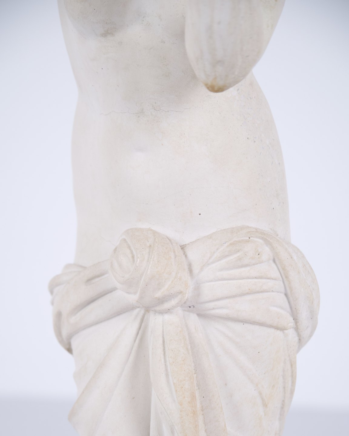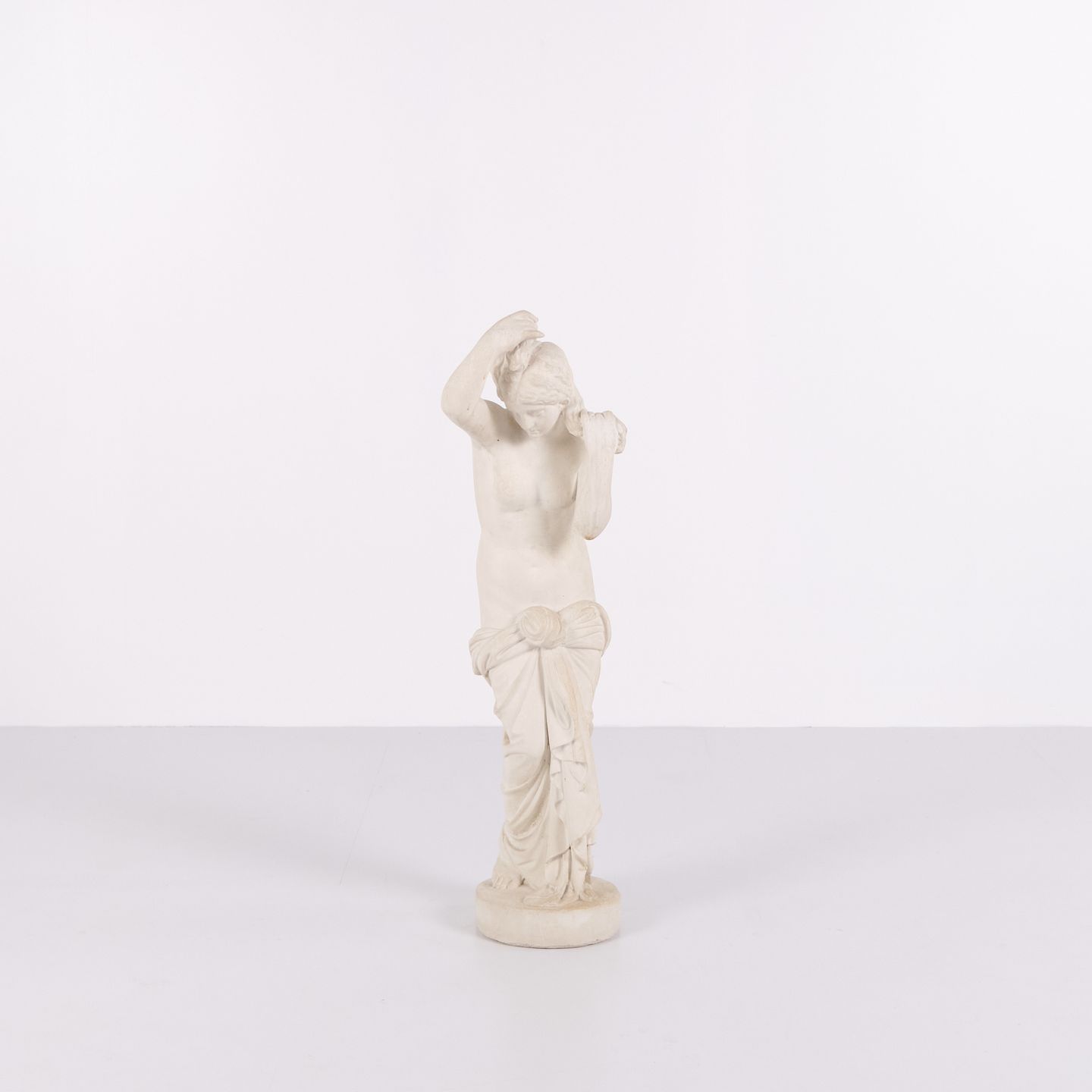Biscuit porcelain sculpture of a female figure from the 1920s in rare large size.— Motif: Female figure, partially undressed