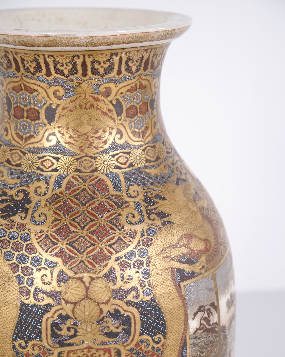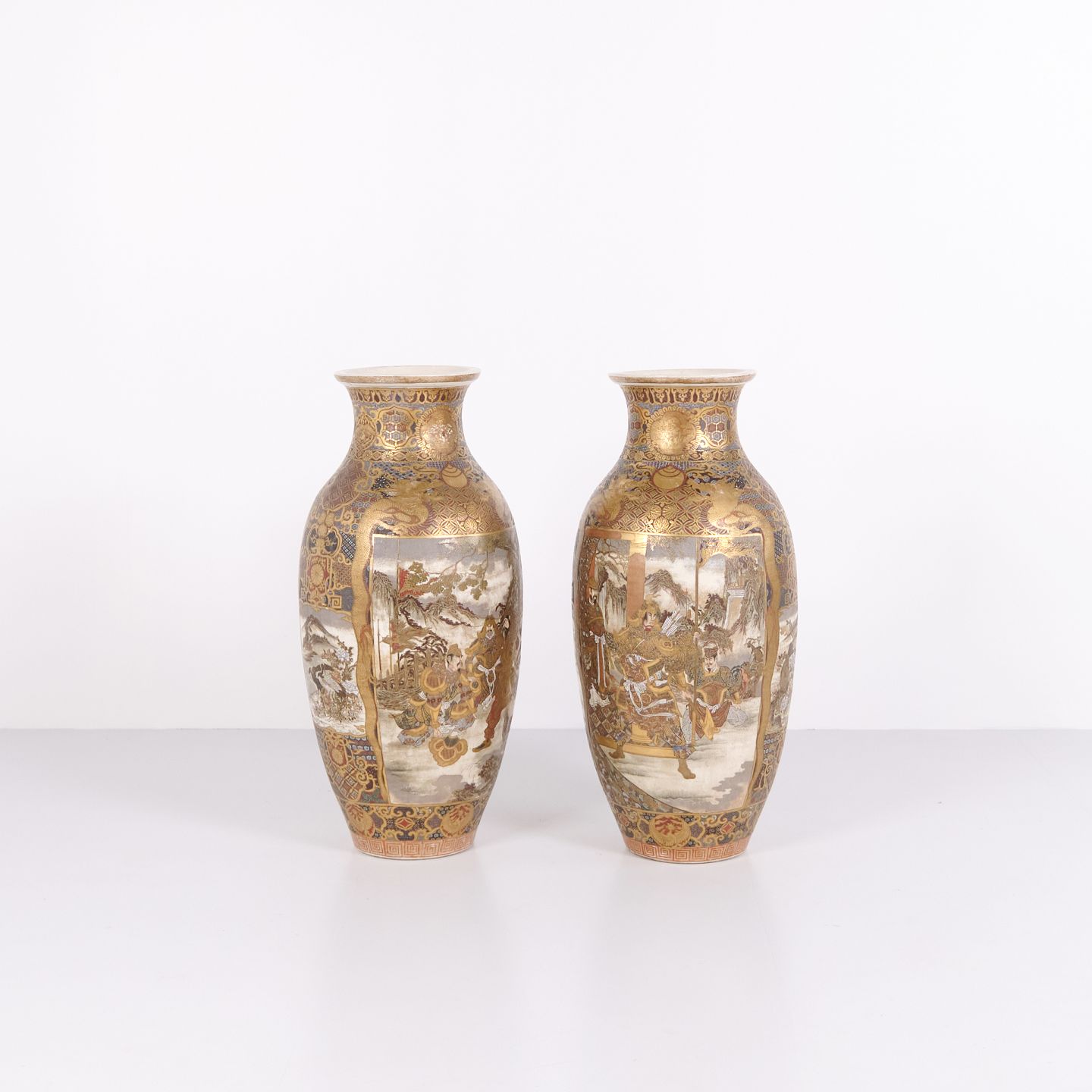 A Pair of Rare Large Japanese Satsuma Vases – Porcelain – Hand-Painted Motifs – Meiji Period (1868–1912)