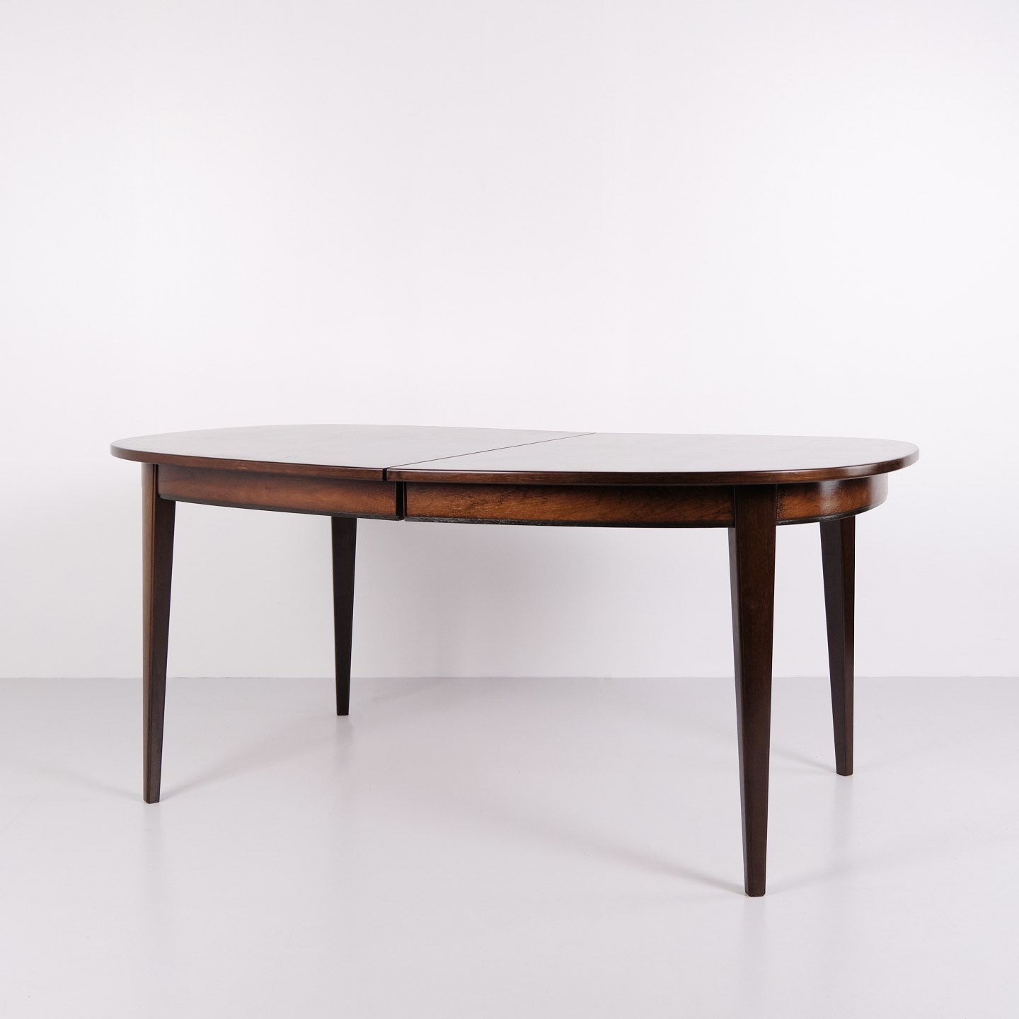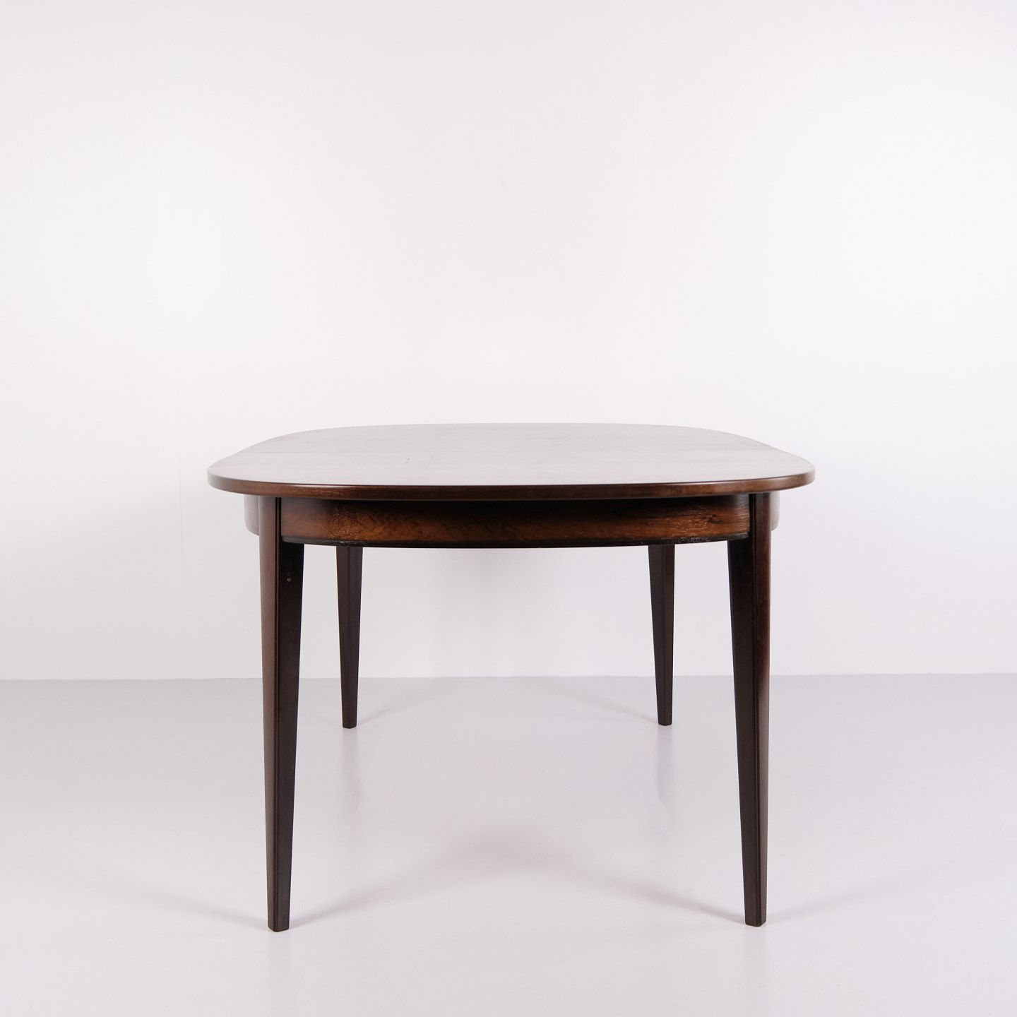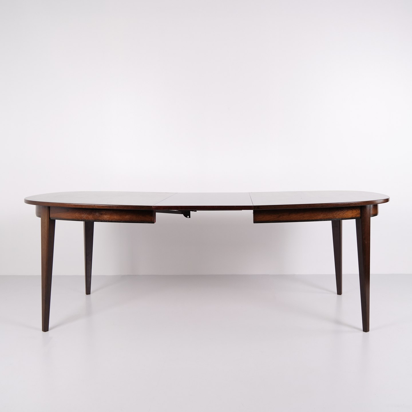 Omann Jun Model 55 dining table by Gunni Omann in rosewood with extension leaves from the 1960s. Danish design rosewood dining table.— Designer: Gunni Omann
