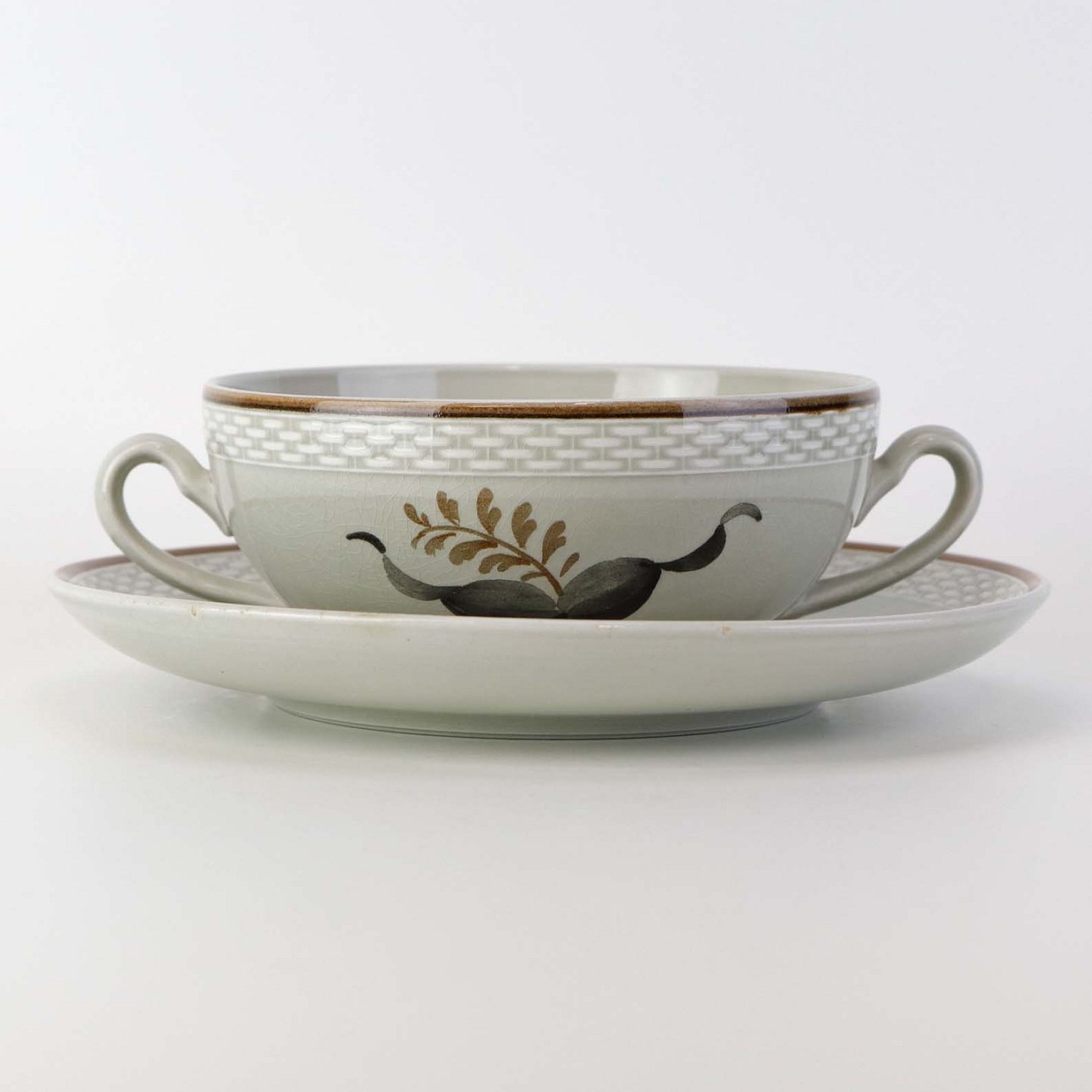Suppekop med underkop i fajance fra stellet Kirsten, som blev fremstillet i perioden 1934-1957. Nr. 263/1633Fomgiver Nils Thorsson