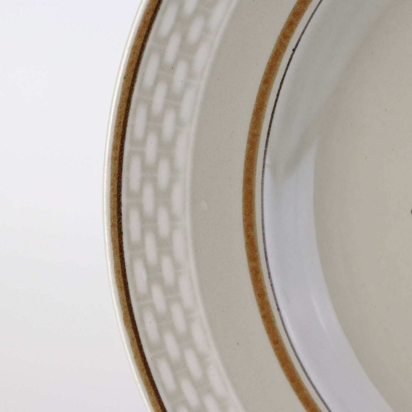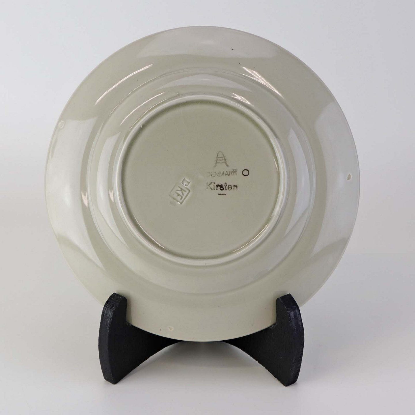 Desserttallerken i fajance fra stellet Kirsten, som blev fremstillet i perioden 1934-1957. Fomgiver Nils Thorsson