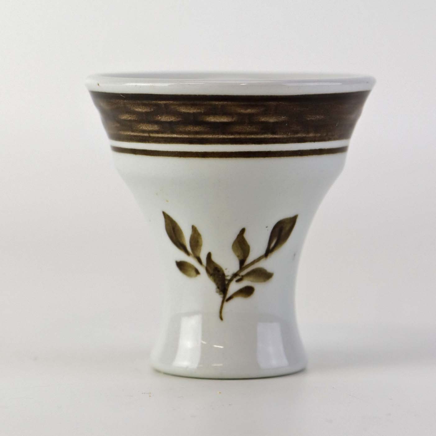 Æggebæger i fajance fra stellet Brun Tranquebar fra år 1919. Nr 45/1006 Fomgiver Chr. Joachim