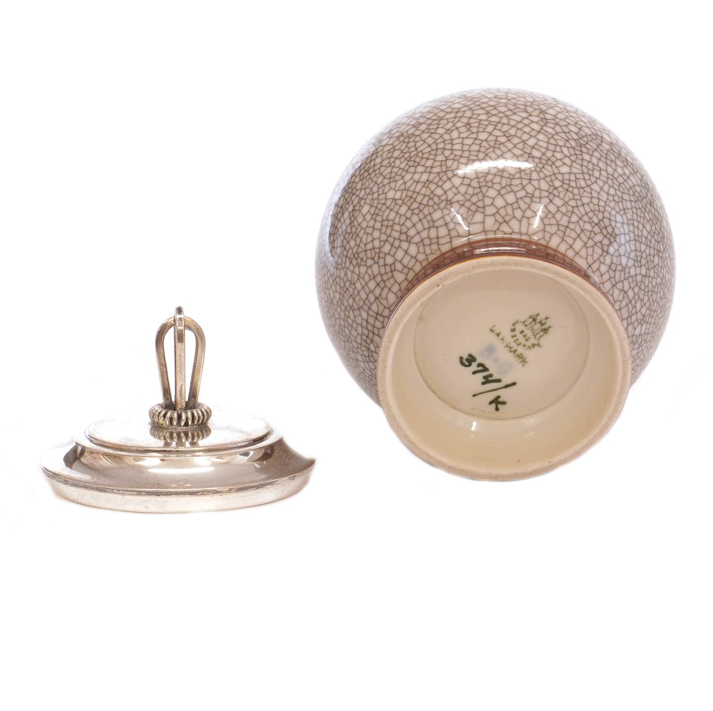 Danish porcelain jam jar by Bing & Grøndahl, CopenhagenSilver lid by Hugo Grün, Copenhagen, 1949