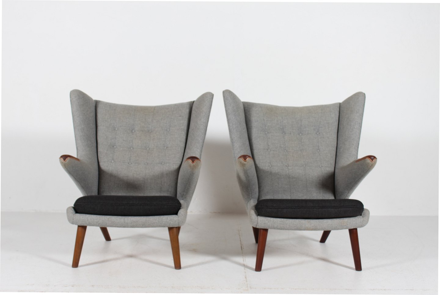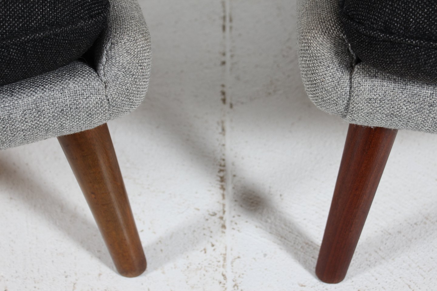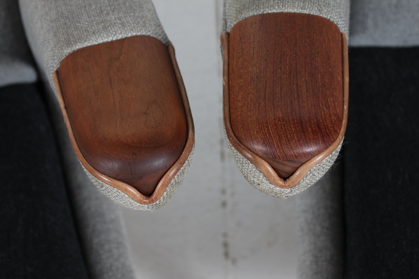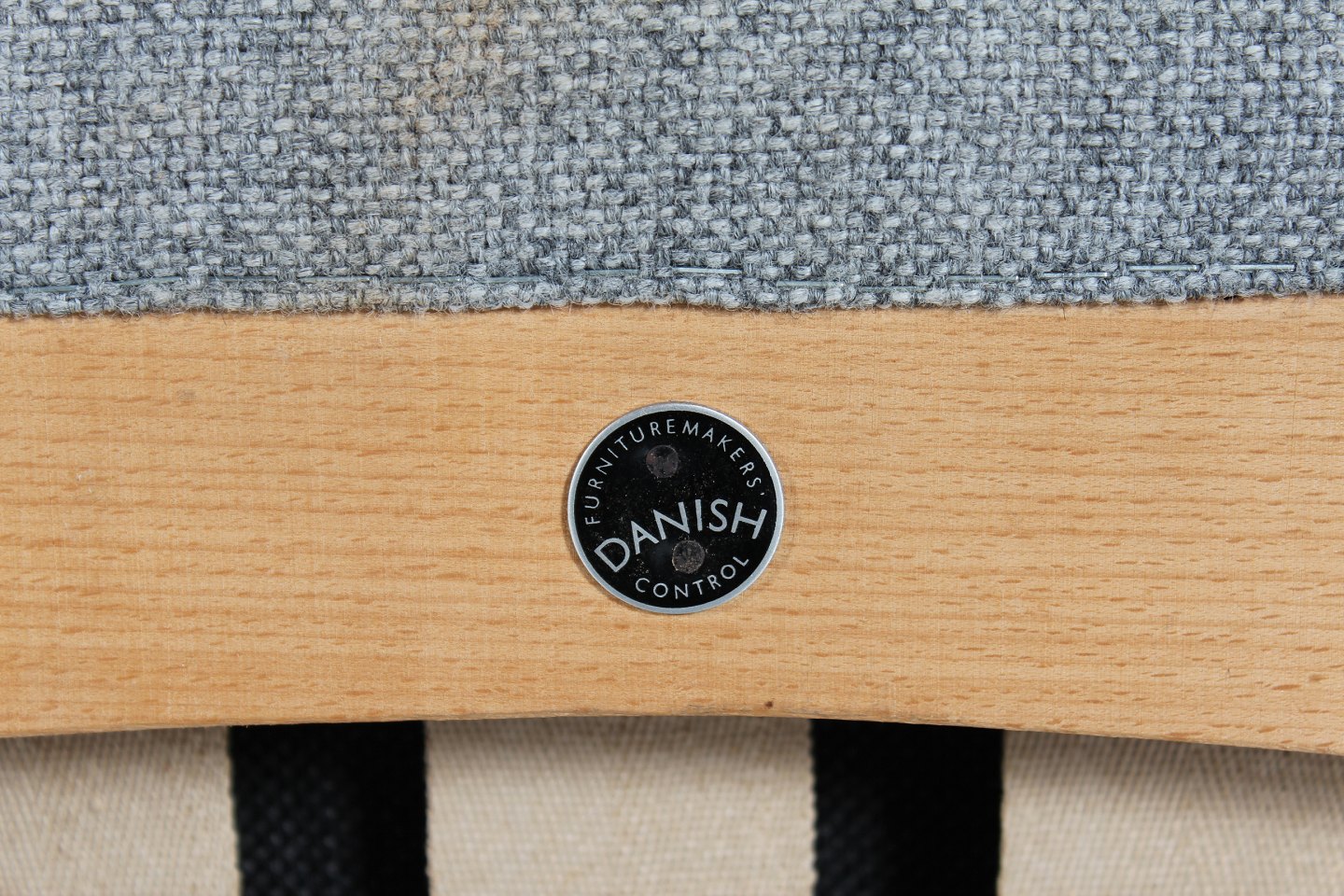solid beech, upholstered with light and dark grey wool