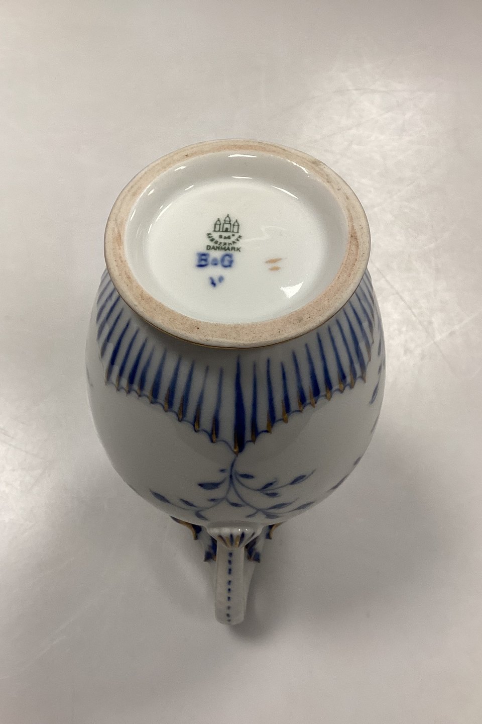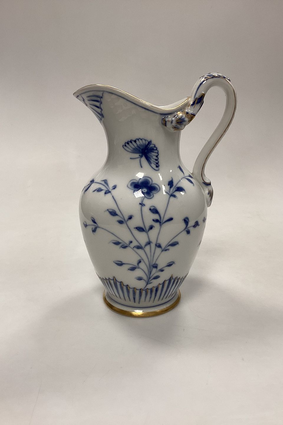 Bing and Grøndahl Butterfly, Gold Pitcher. Handle with dolphins and clam.Measures 23 cm / 9.06 in.