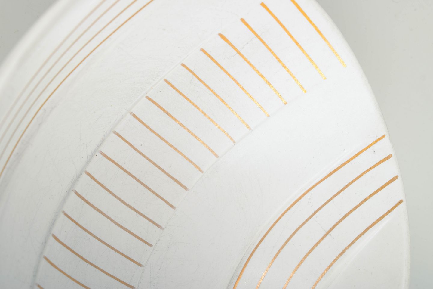 Wilhelm Kåge for Gustavsberg, large bowl.Large, organically shaped bowl in glazed ceramic with a subtly undulating relief and fine gilt decoration. Studio hand work, “Guldsurrea”.