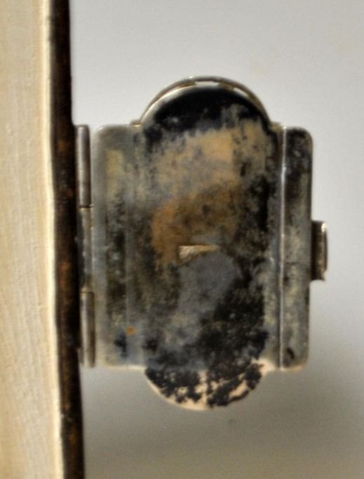 Psalm book in black leather binding and silver fittings, 1857. Denmark. Silver fittings with filigree. H.: 17 cm. Silver fittings with indistinct master mark.Inside with text: Belongs to Christian Pallesen, bought at auction on January 29, 1857.