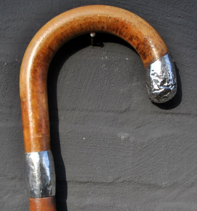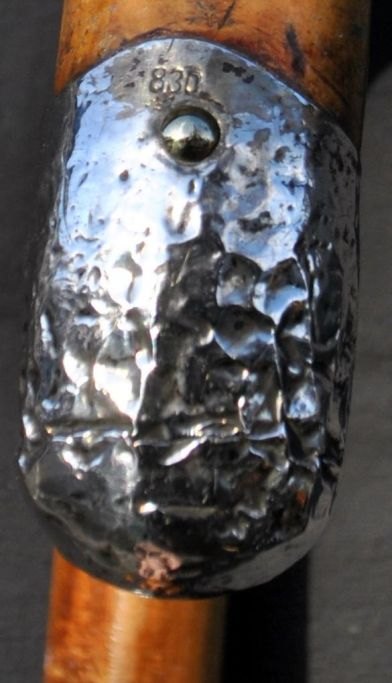 Wooden walking stick with silver fittings by H.Schæbel, Copenhagen, Denmark, 1943-1973. Stamped: H.Sch. 830S. With rubber foot. L: 89 cm.Item number: 28914