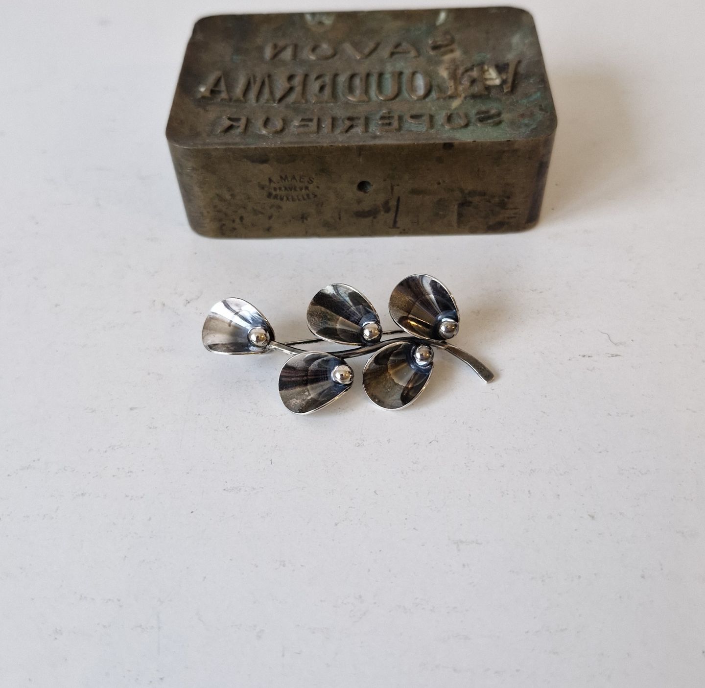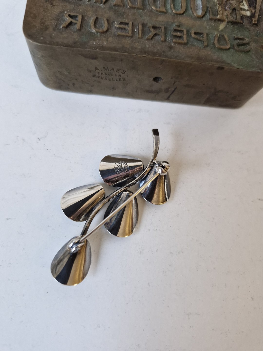 N.E.From vintage brooch in sterling silver in the shape of a branch with leaves.Stamp: Sterling - Denmark - N.E.From - 925.