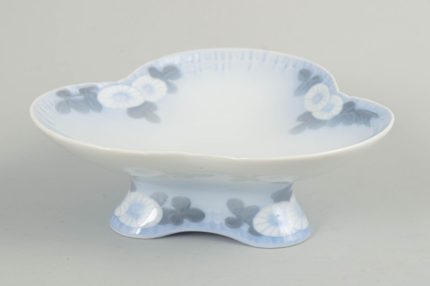 Royal Copenhagen, Midsummer Night’s Dream, low bowl.Low footed porcelain bowl from the Midsummer Night’s Dream series, model 73/10032. The bowl features softly contoured lines, a low pedestal base, and decoration in subtle blue tones.