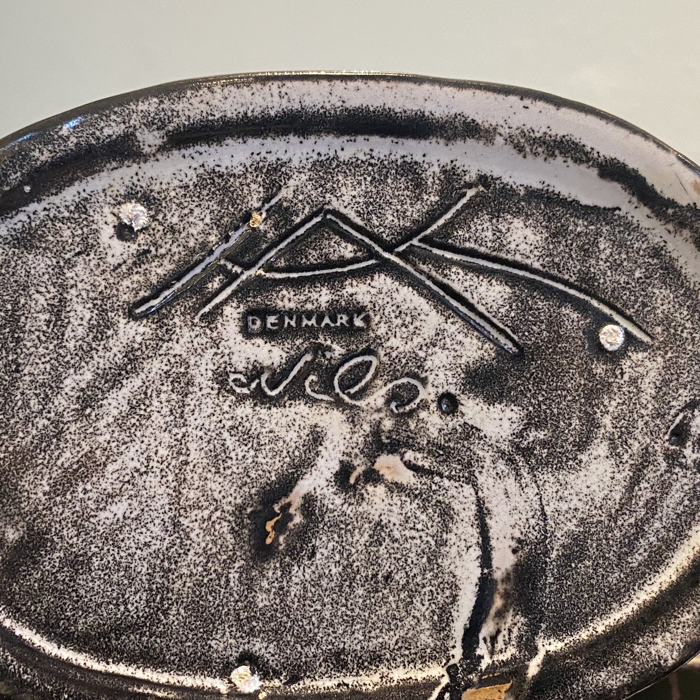 Nils Kähler Large oval table lamp with ash grey glaze. Signed Nils KAH. Socket with switch button
