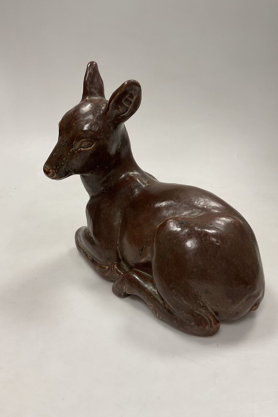Royal Copenhagen Stoneware Figurine of lying young deer No 20506. Designed by Knud Kyhn. Measures 24 cm / 9 29/64 in.Stock: 1