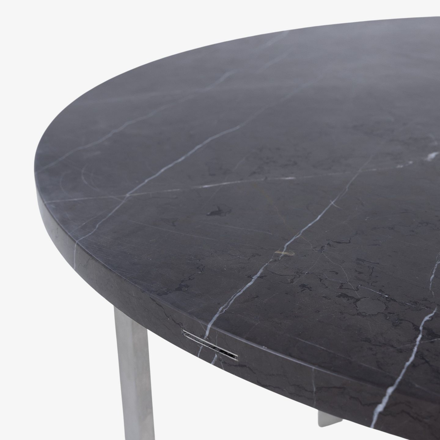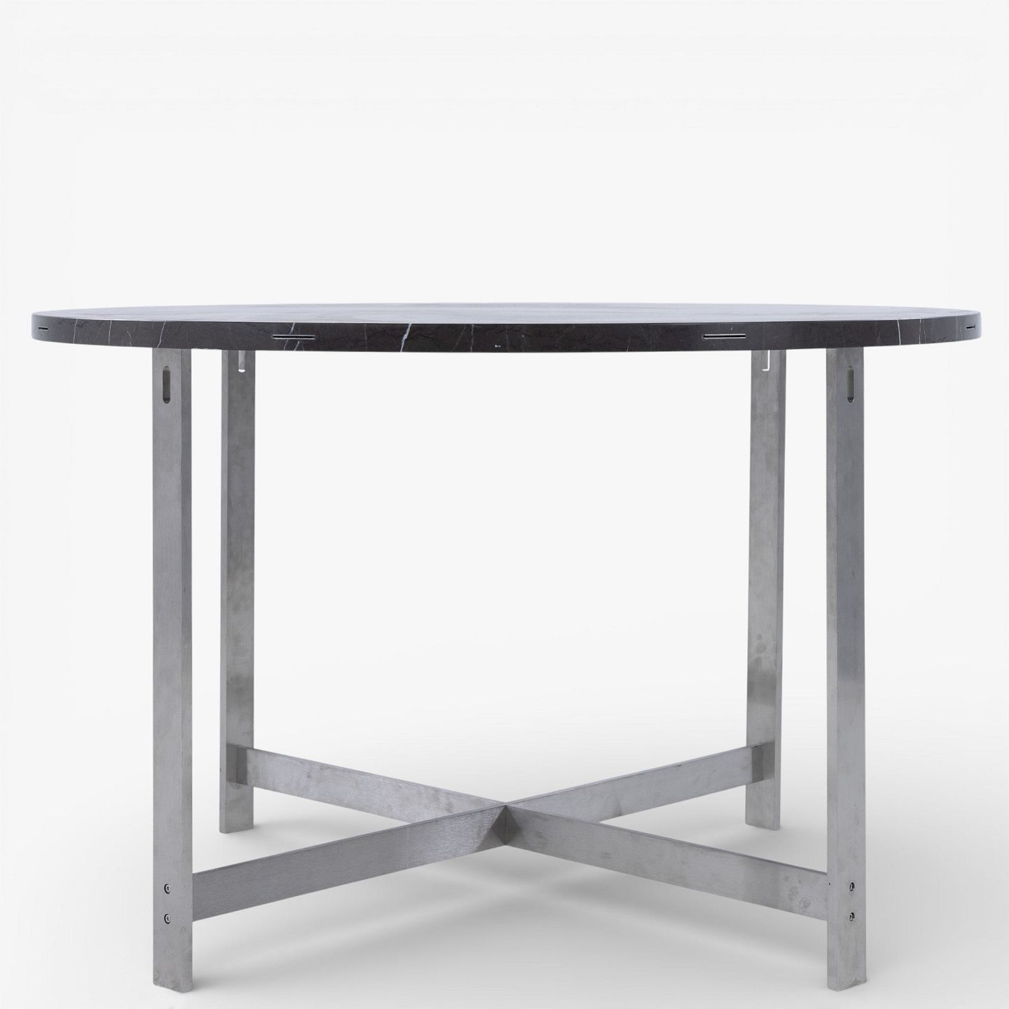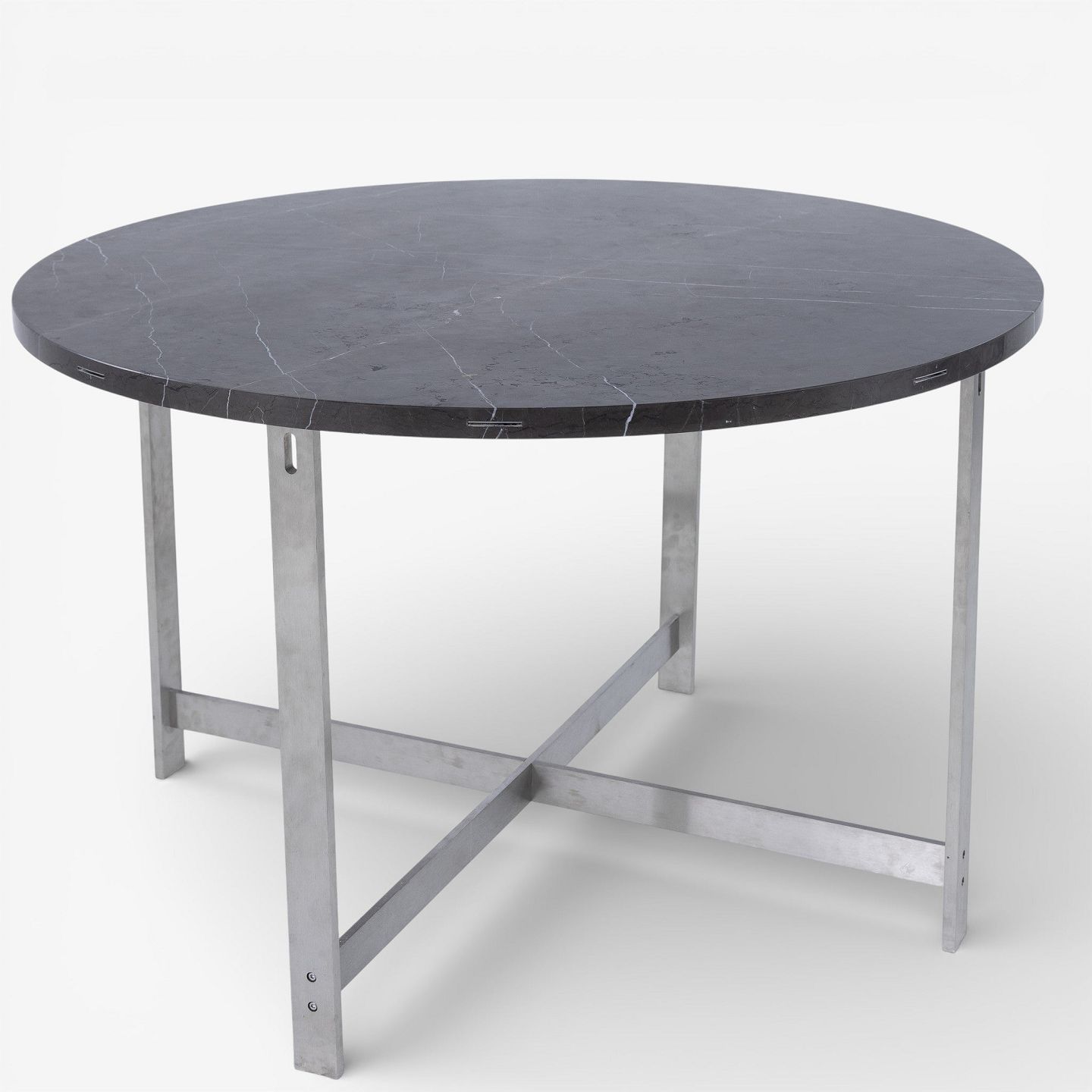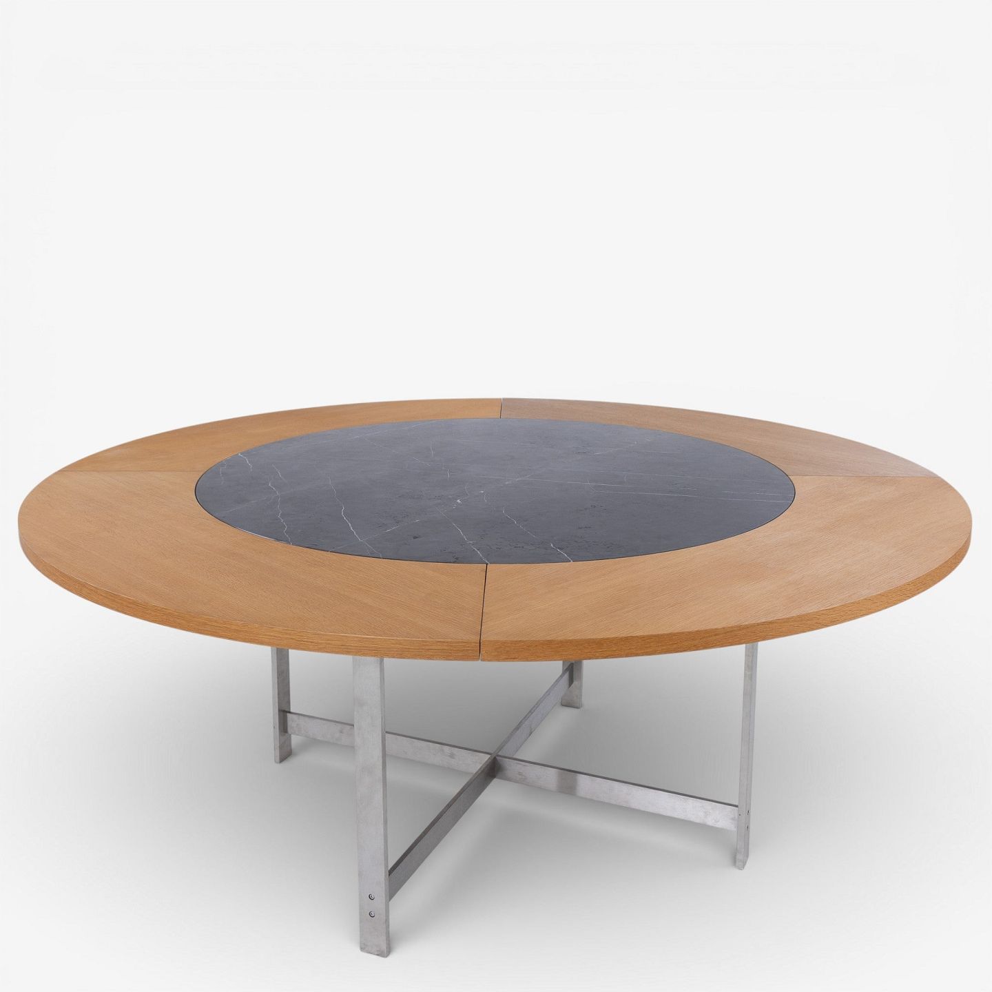 JH Spisebord med stel i stål og plade i grå marmor m. tillægsringe i olieret eg.