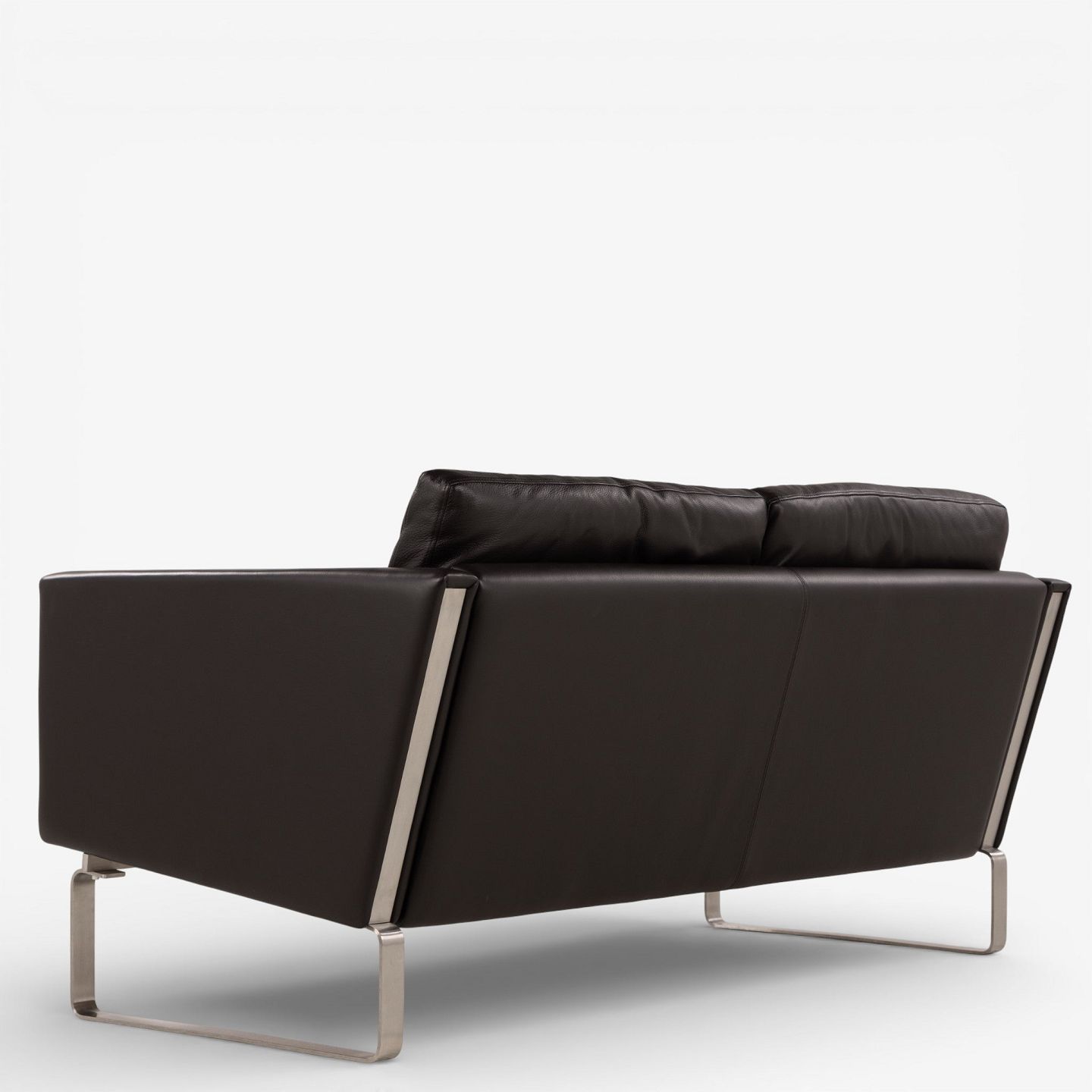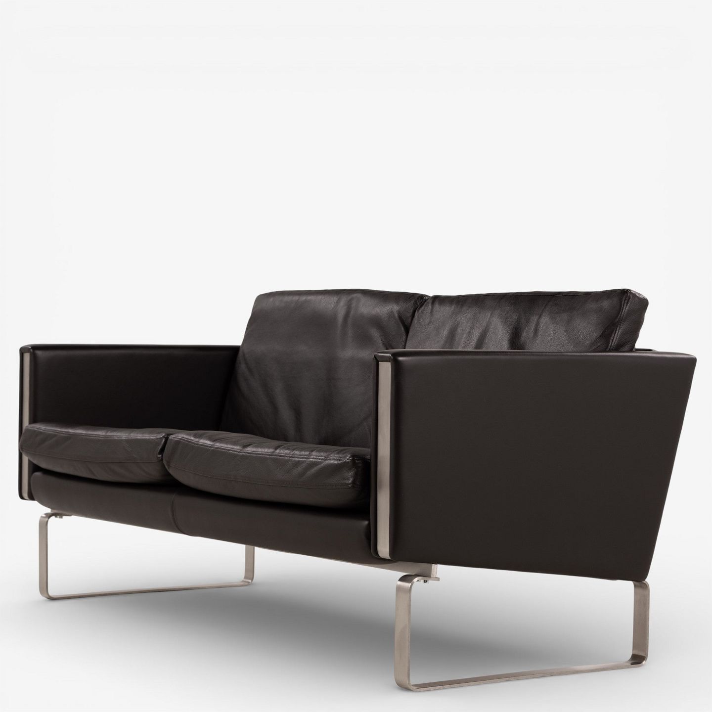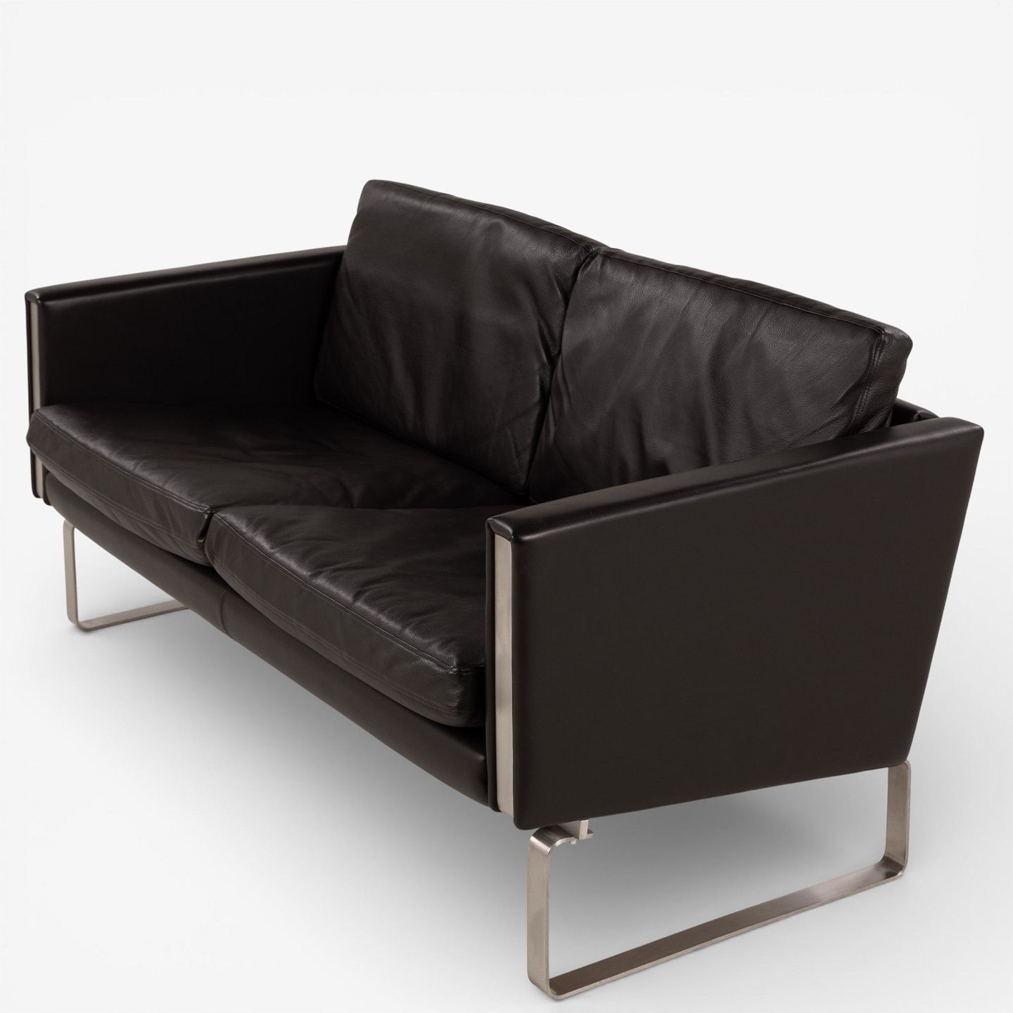 CH 102 - 2-seater sofa in dark brown, patinated semi-aniline leather with steel frame. Manufacturer's mark.