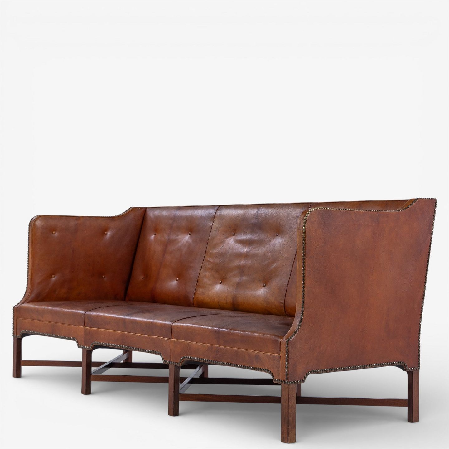KK 4118 - 3-seater sofa in patinated niger leather on a cross-frame in Cuban mahogany. Designed in 1930.